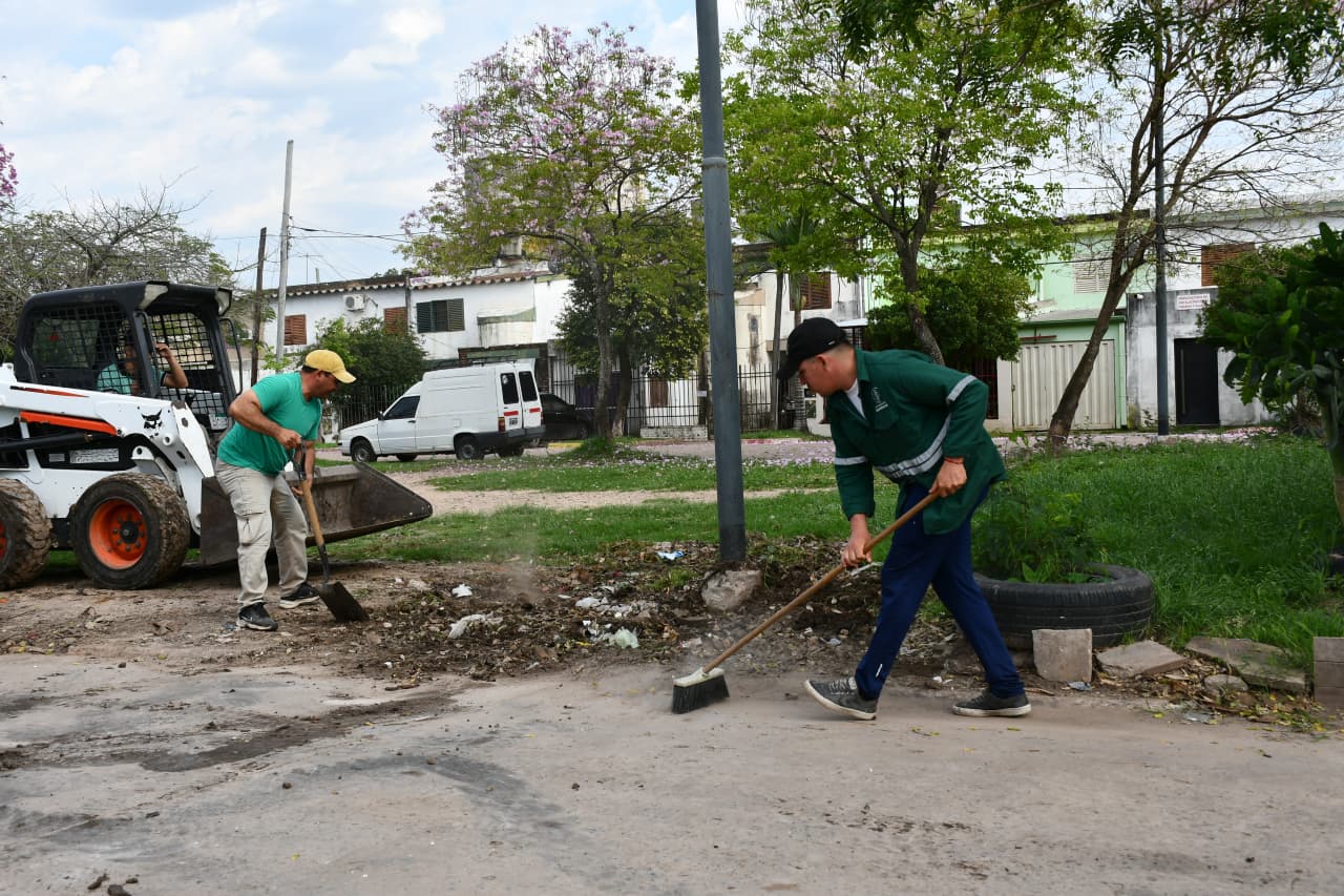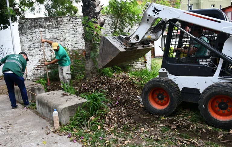 [20/09/2025-Con trabajos de limpieza general y descacharrado, la Municipalidad de Resistencia continúa trabajando en todos los barrios de la ciudad. Este sábado fue en el Provincias Unidas, intervención que fue ejecutada por personal y equipos viales de la Coordinación de Ambiente y Movilidad Urbana.