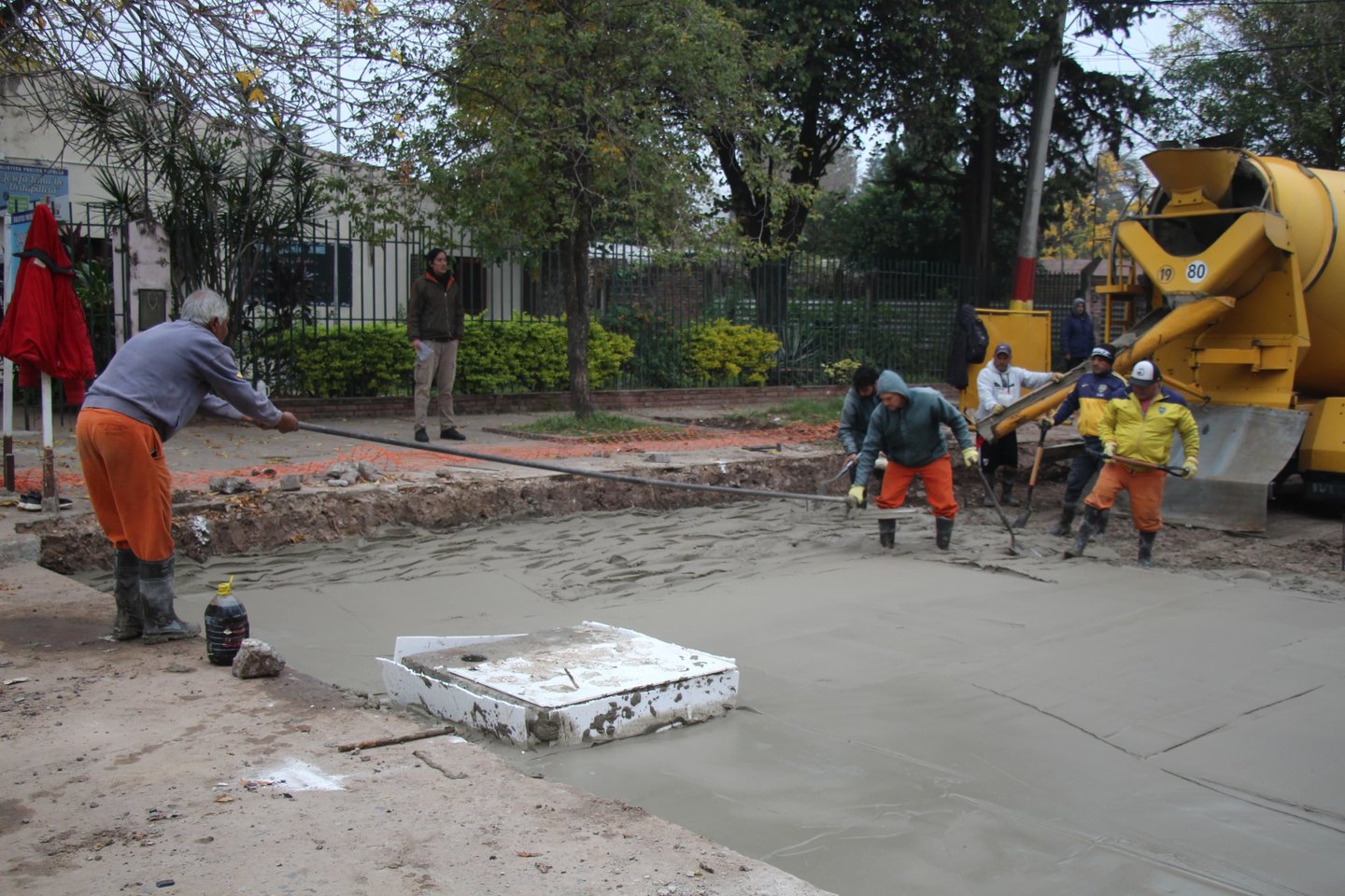 Así lo explicó Juan Manuel López, director técnico del área de Pavimento: “Se está reparando un conducto pluvial y colocando la base del pavimento de hormigón con material RDC (Relleno de Densidad Controlada)”.