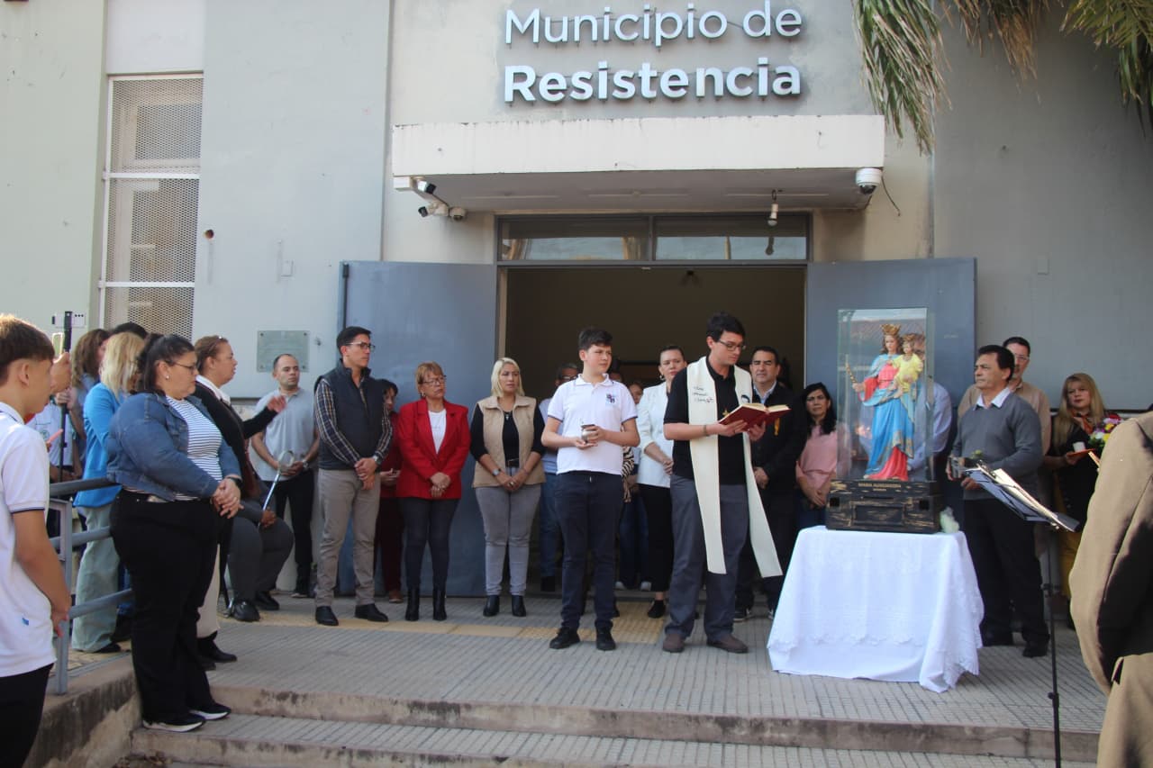 Desde la Secretaría de Coordinación de Gabinete resaltaron esta ceremonia, que ya lleva más de 30 visitas a instituciones públicas de Resistencia. “Hemos sido bendecidos los trabajadores y todas las personas que pasan por el Municipio, es un honor y un placer recibir la visita de María Auxiliadora”, indicaron.