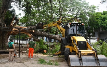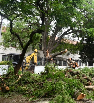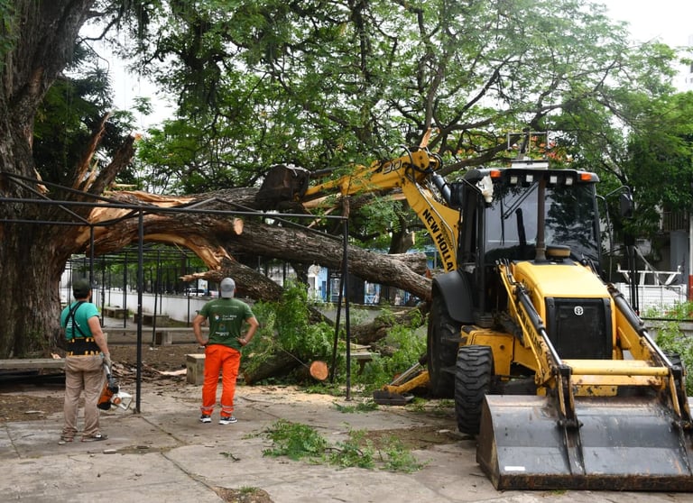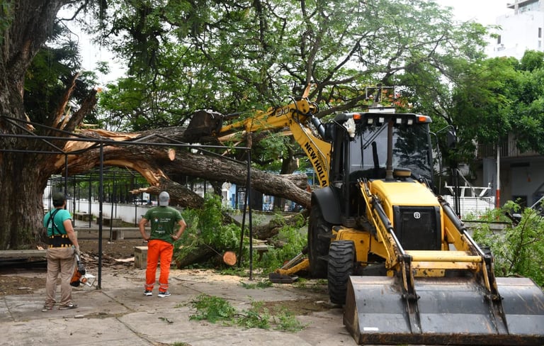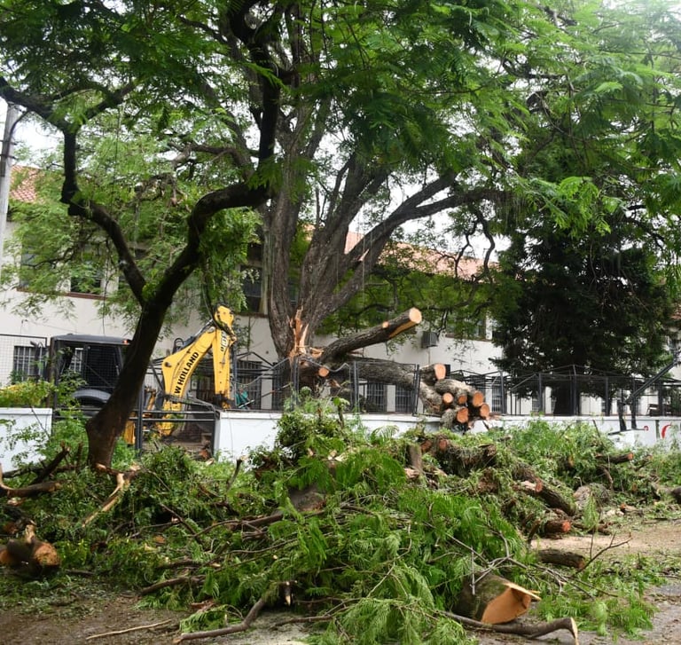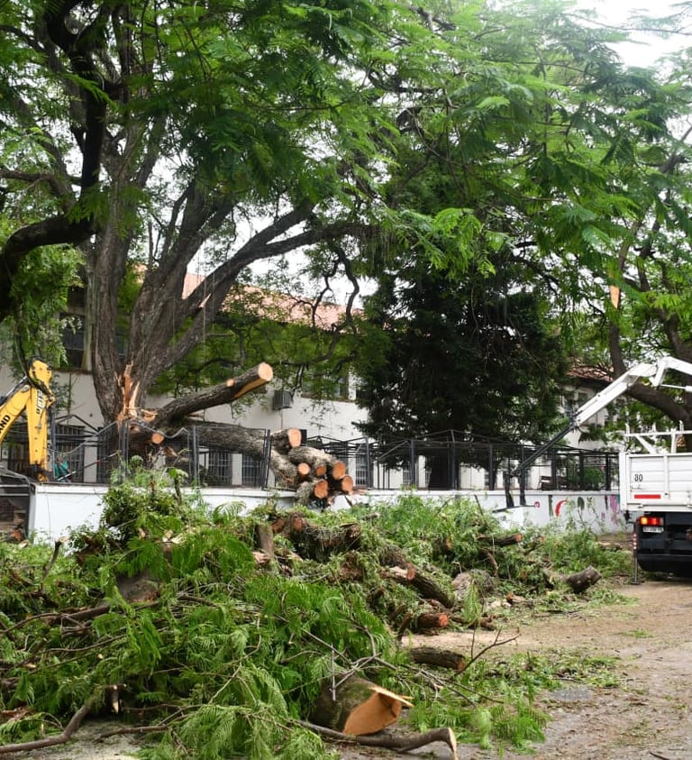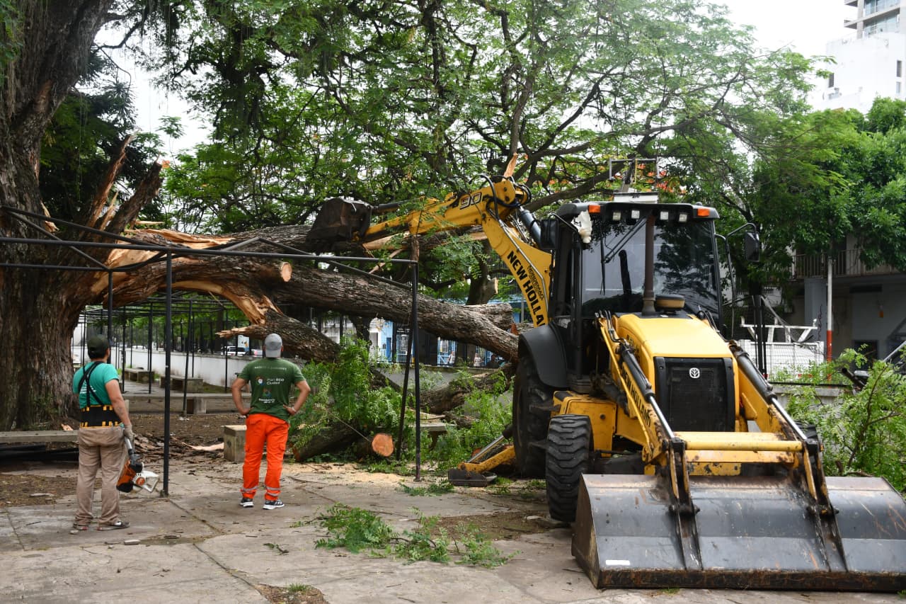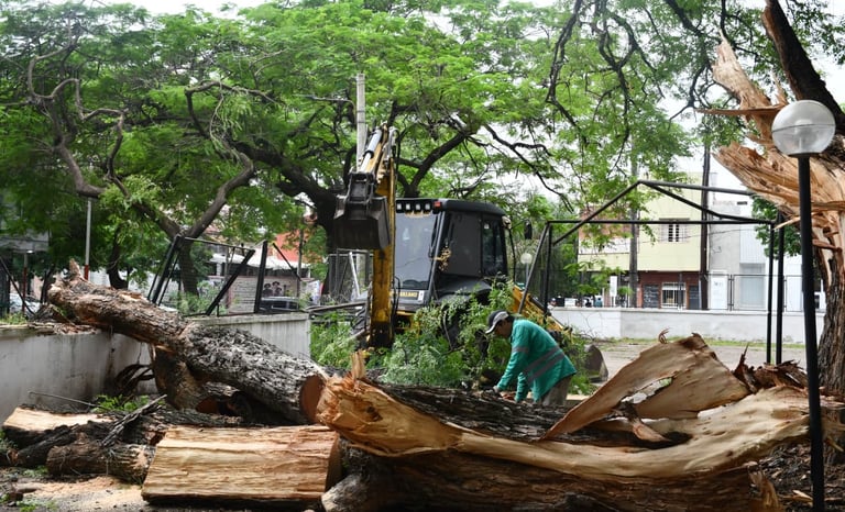 [01/12/2025] - La Municipalidad de Resistencia retiró los restos de dos árboles que cayeron a la vía pública, frente a la Escuela Normal Sarmiento, por calle Santiago del Estero al 350. No se registraron personas heridas, pero hubo daños en un auto estacionado.