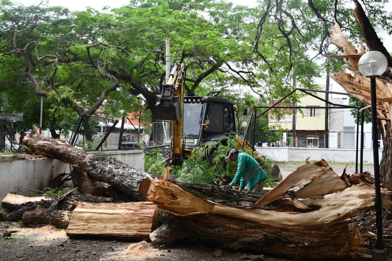 El accidente sucedió poco después de las 7:30 horas y debió intervenir personal de la Dirección de Paseos y Jardines para retirar las ramas de estas especies, mientras que inspectores viales regularon la circulación vehicular y restablecieron el tránsito en el menor tiempo posible. El retiro de las ramas reducidas se desarrollará en el transcurso del día.