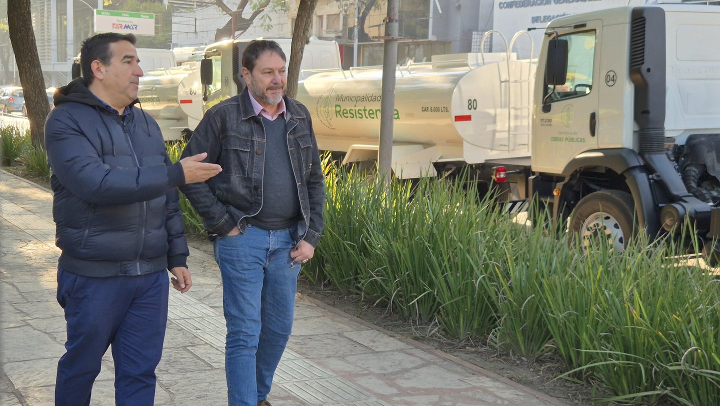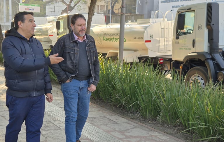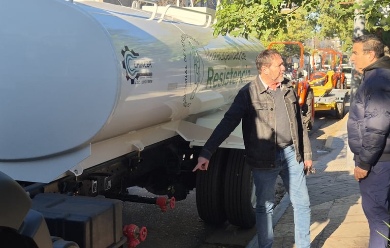 [19/07/2025]-La Municipalidad de Resistencia presentó nuevos equipos viales para reforzar los servicios en la ciudad. Se trata de 6 camiones regadores de 230 hp y capacidad para 8 mil litros y tres tractores con desmalezadoras, todos adquiridos con fondos propios.