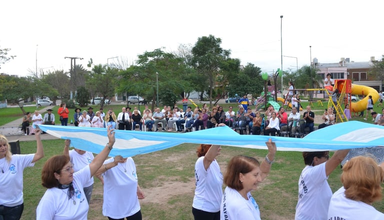 “Acá estamos junto a este Club de Adultos Mayores, que quisieron compartir con nosotros este Día de la Bandera”, dijo, a su vez, Jessica Meza, subsecretaria municipal de Acción Social.