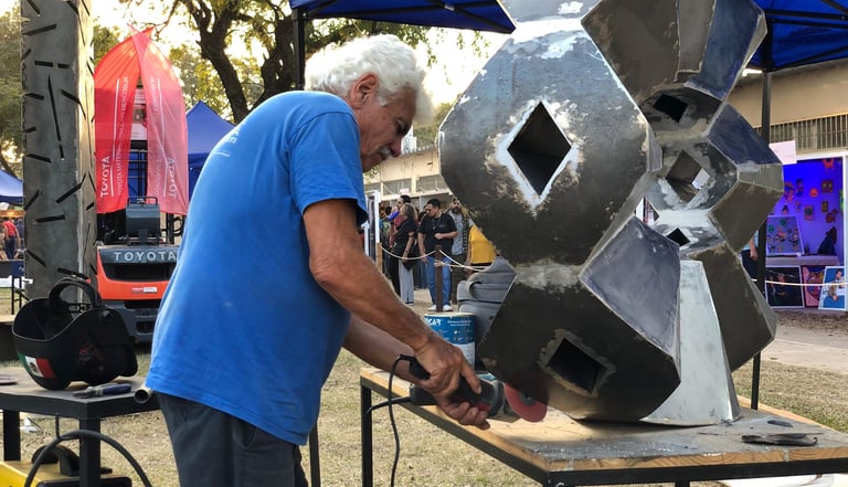 [19/07/2024] - El trotamundos de las esculturas volvió a mostrar su amor por la Bienal del Chaco. En su cuarta presencia en el evento, Monge reiteró que lo que se vive en Resistencia es algo único que no ha visto en ninguno de los 30 países que ha visitado para participar de más de 140 simposios sobre esta especialidad artística.