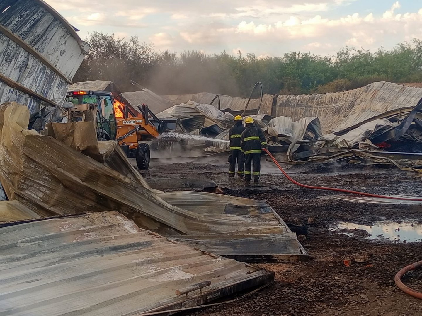 Con tres retroexcavadoras y camiones cisterna de la Secretaría de Obras Públicas y siguiendo instrucciones del intendente Roy Nikisch, hasta entrada la noche se estuvo combatiendo el foco ígneo que arrasó el tinglado y paredes de estos inmuebles, aunque no se registraron personas heridas.