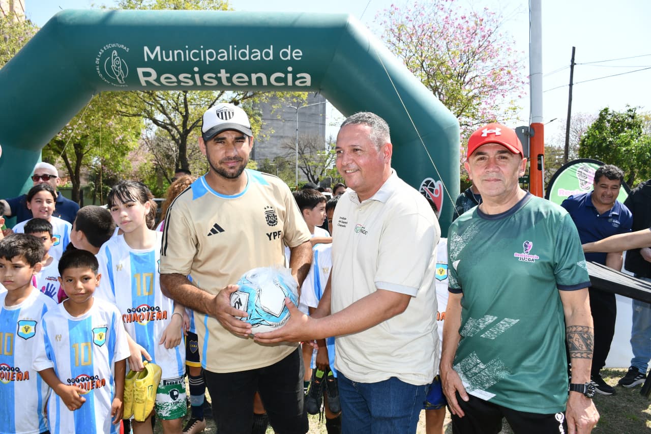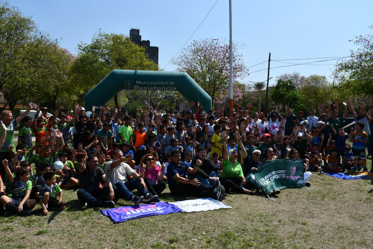 [23/09/2025-La copa "Resistencia Juega" comenzó a mover a centenares de chicos, entrenadores y familias para esta segunda parte del año. 10 equipos de las zonas norte y este participaron del puntapié inicial que tuvo lugar en el Parque Urbano "Laguna Argüello". En un trabajo articulado de la Municipalidad capitalina y el Instituto del Deporte Chaqueño, se puso en marcha este ya tradicional evento deportivo, que seguirá hasta fin de año.