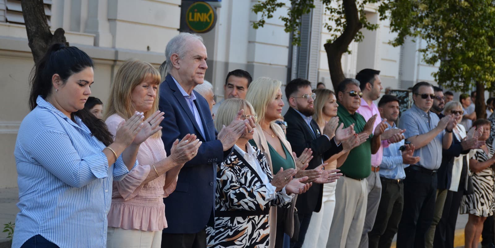 La Banda Municipal de Música “Luis Omobono Gusberti” acompañó mientras que representantes de colectividades y excombatientes desfilaron ante las autoridades, encabezadas por el intendente Roy Nikisch.