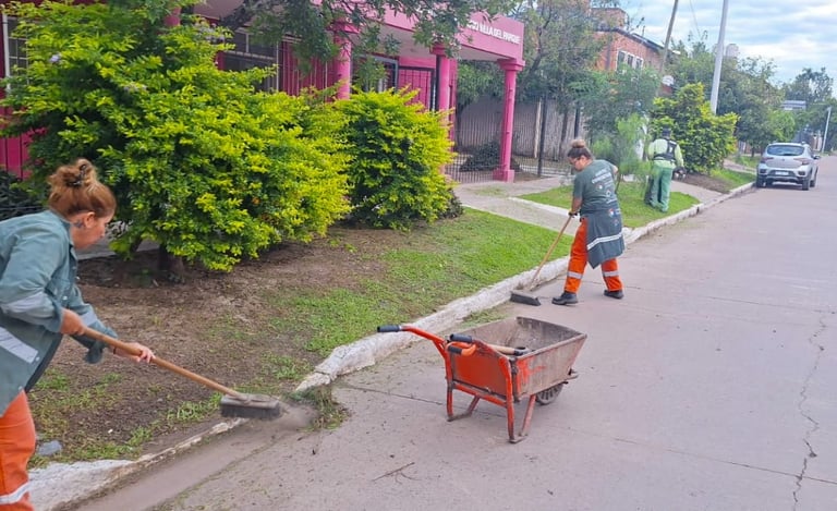 Por otra parte, hubo desmalezado y barrido en la avenida Juana Azurduy, tarea conjunta de la delegación del Parque 2 de Febrero y el CCM de Villa Río Negro.