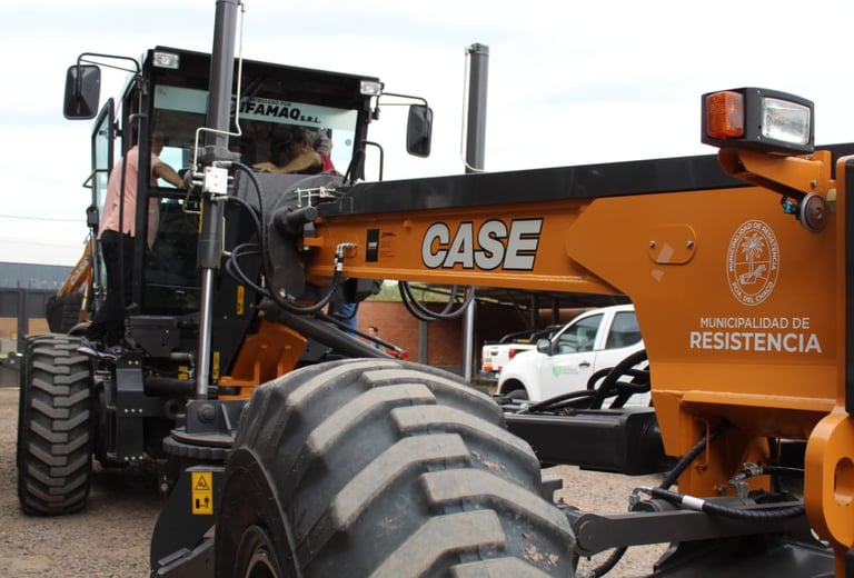 [14/06/2024] - La Municipalidad de Resistencia puso en marcha los equipos viales 0 kilómetro destinados a los operativos para el bacheo y perfilado de las calles de la ciudad. Se trata de 5 motoniveladoras modelo 865 y dos retroexcavadoras modelo 580 N serie 2, todas marca Case, de última generación y que de inmediato serán puestas a trabajar, previa capacitación al personal comunal encargado de conducirlas.