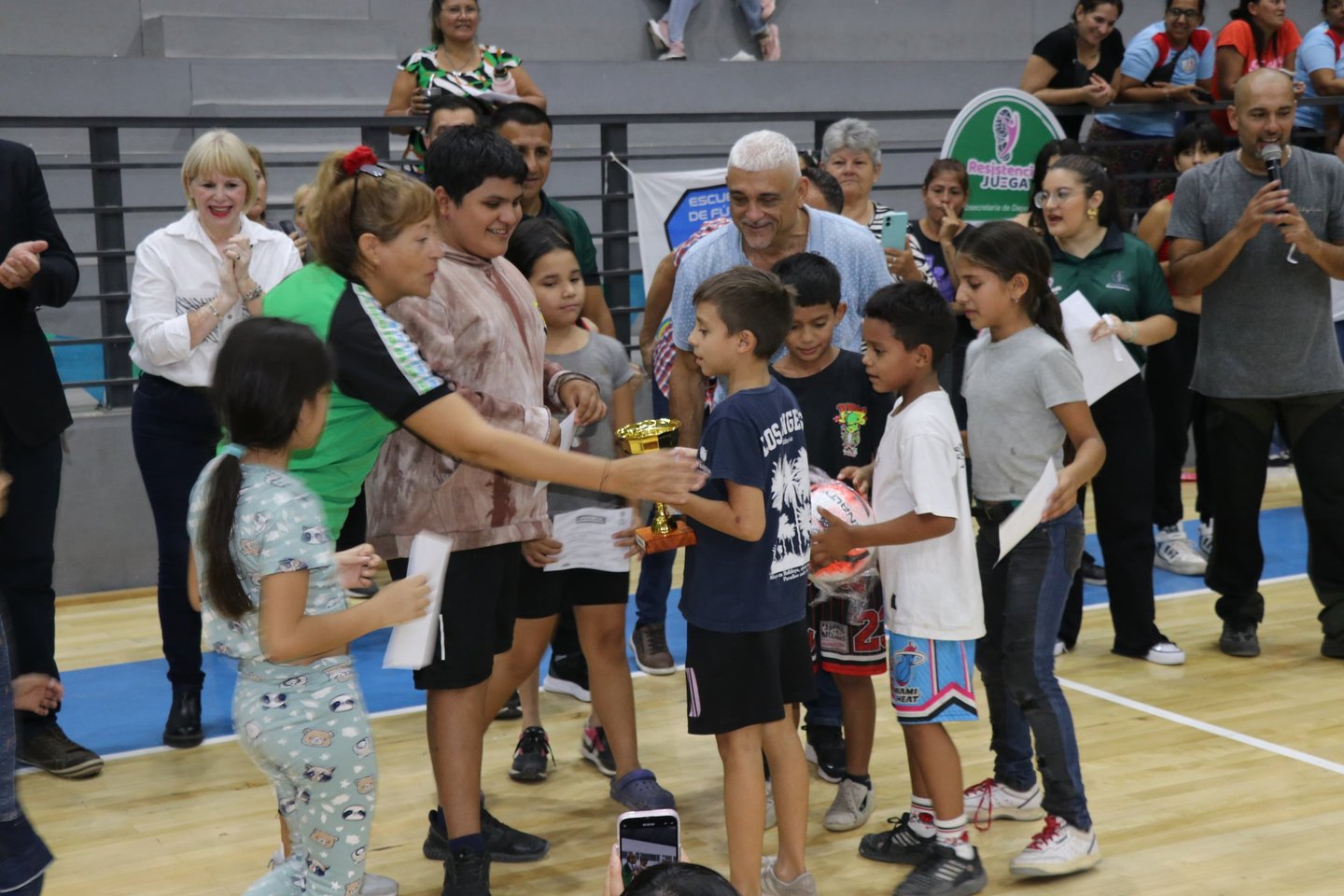 13/04/2025] - En la cancha de básquet del Centro de Educación Física (CEF) N° 1, se llevó a cabo la entrega de trofeos y certificados de la etapa final de la Copa Resistencia Juega, organizada por la Municipalidad. A los largo de tres meses el certamen contó con la participación de 70 equipos sub 8, sub 10 y sub 12 de los distintos barrios de la Ciudad.