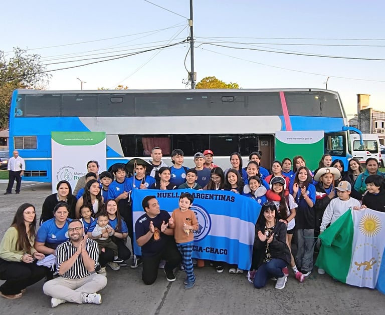 [08/10/2025-Una delegación de 41 representantes de la Escuela Municipal de Danzas Folklóricas “Huellas Argentinas”, emprendió un viaje hacia la ciudad de Tanti, Córdoba. Allí participarán del Certamen Nacional de Malambo y Danzas; donde la representación resistencia espera repetir y mejorar los resultados obtenidos en años anteriores.