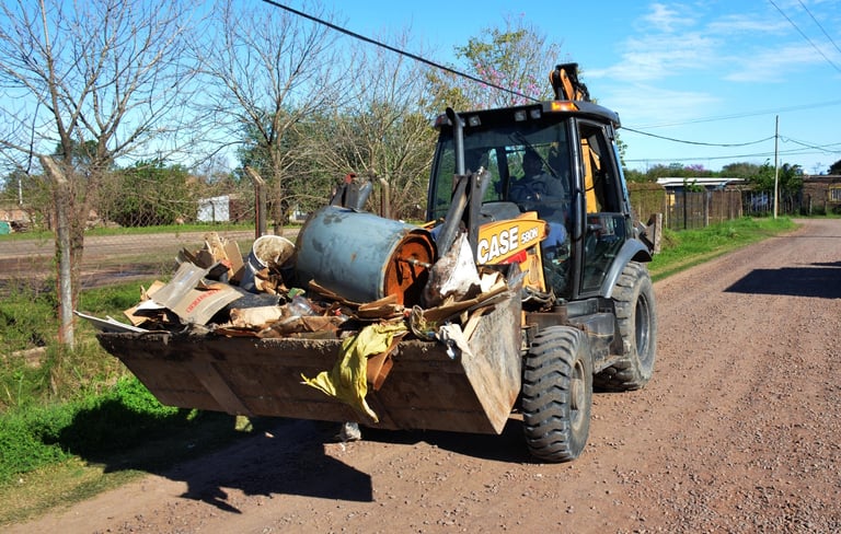 [08/09/2025-El barrio Parque Autódromo fue sede de un nuevo operativo integral de descacharrado, limpieza y recolección de residuos. Con 3 camiones volcadores, una retroexcavadora y una minicargadora, personal de la Secretaría de Ambiente y Movilidad Urbana municipal ejecutó esta tarea que demandó varias horas.