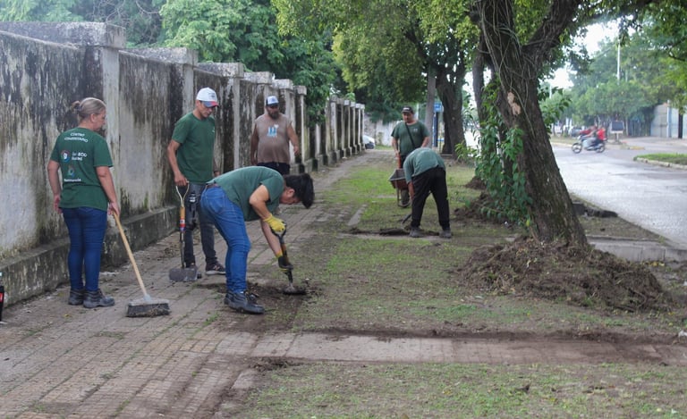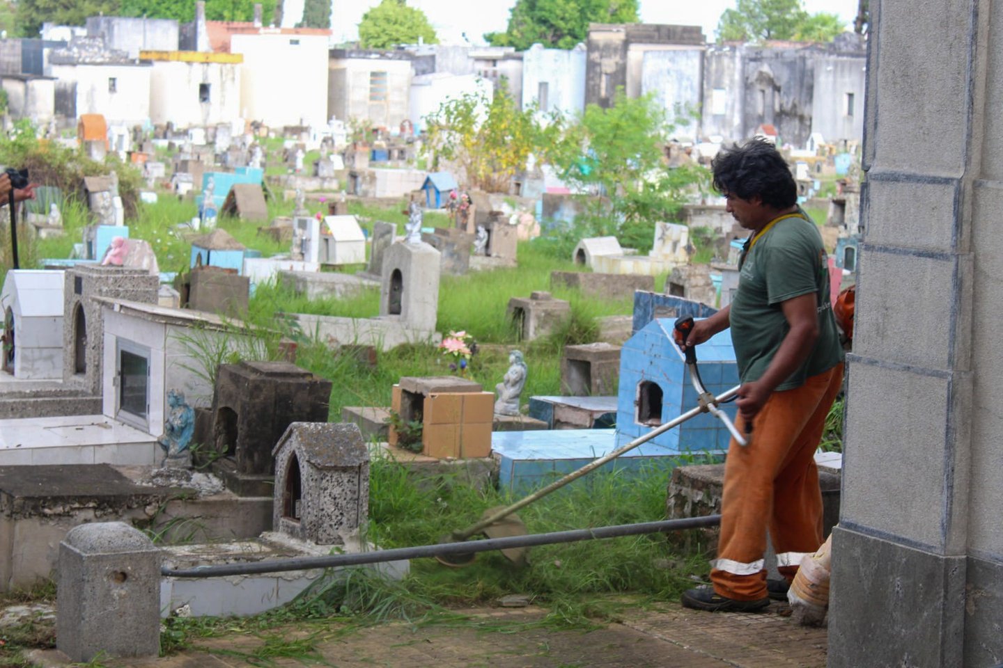 Personal de esta dependencia comunal desarrolla tareas de desmalezado, tanto en los espacios verdes de las veredas como adentro de la necrópolis, así como barrido manual, recolección de ramas y pintura de los distintos accesos.
