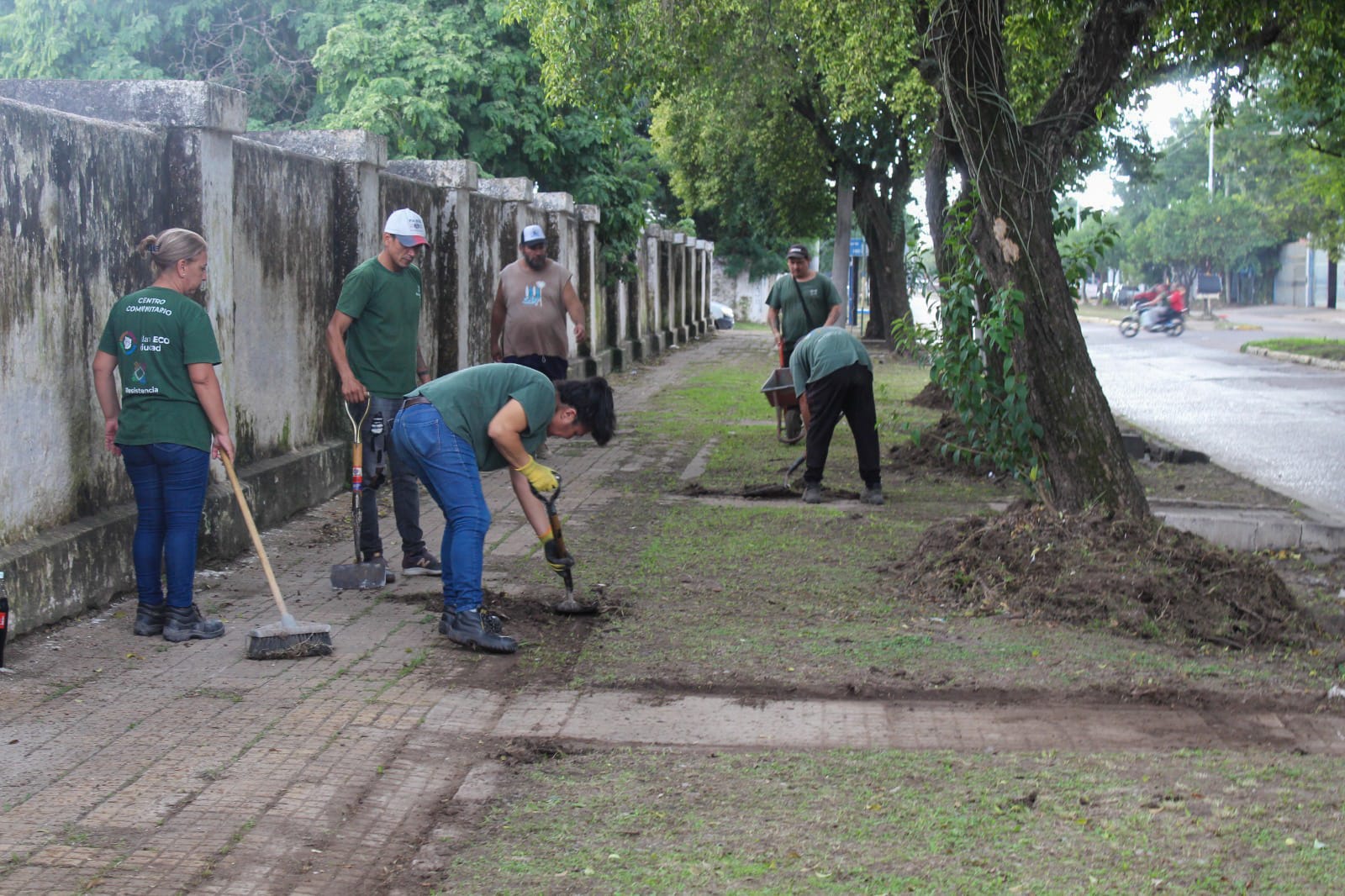 Asimismo, la directora Lidia Miño indicó que “es un trabajo a diario, frecuentemente retiramos escombros, flores, coronas y cuando nos permite el clima, hacemos estas intervenciones”.