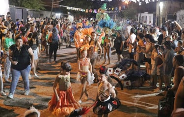 EL CARNAVAL LLEGÓ AL BARRIO MARIANO MORENO, EN UNA NOCHE CARGADA DE MÚSICA, BAILE Y COLOR