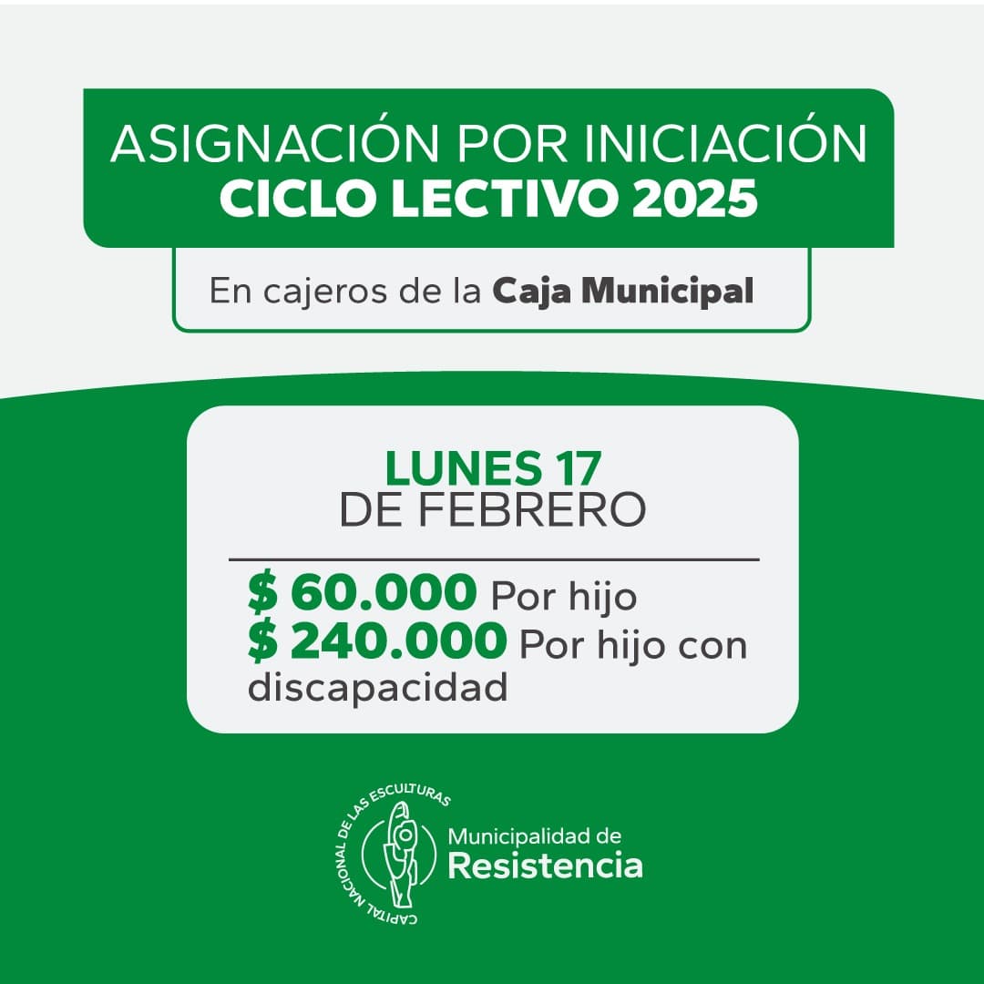 [11/02/2025] - El intendente de Resistencia anunció que a partir del lunes 17 de febrero se abonará al personal municipal la asignación por iniciación del ciclo lectivo 2025. Se pagará a través de la Caja Municipal.