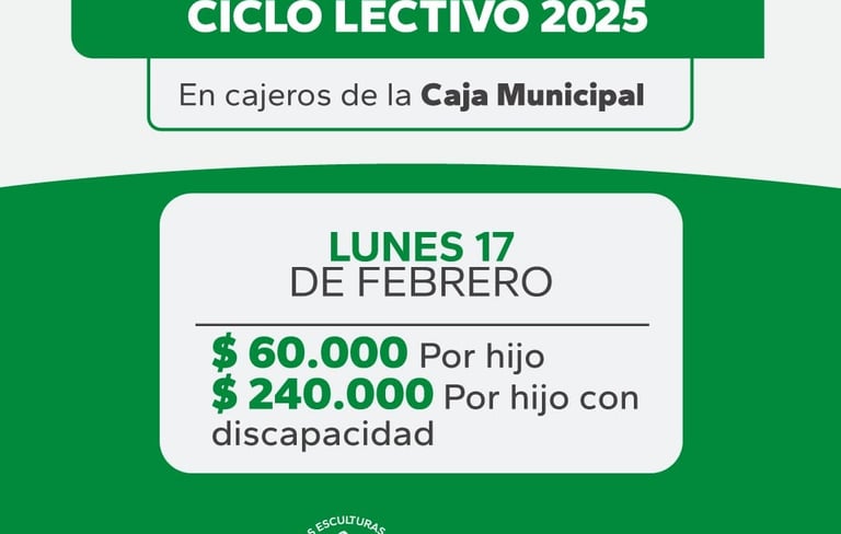 EL LUNES 17 DE FEBRERO EL MUNICIPIO PAGA LA ASIGNACIÓN POR INICIO DE CICLO LECTIVO