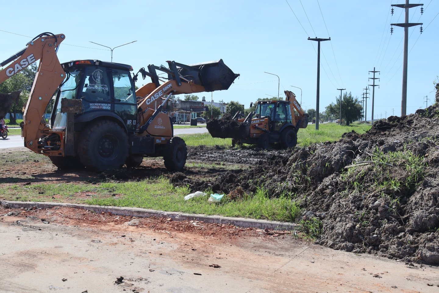 En una primera etapa con una retroexcavadora remueven la tierra sobrante de los costados del Canal, y en una segunda instancia la trasladan, en camiones batea, al Autódromo Yaco Guarnieri, en donde están tapando un pozo de grandes dimensiones.