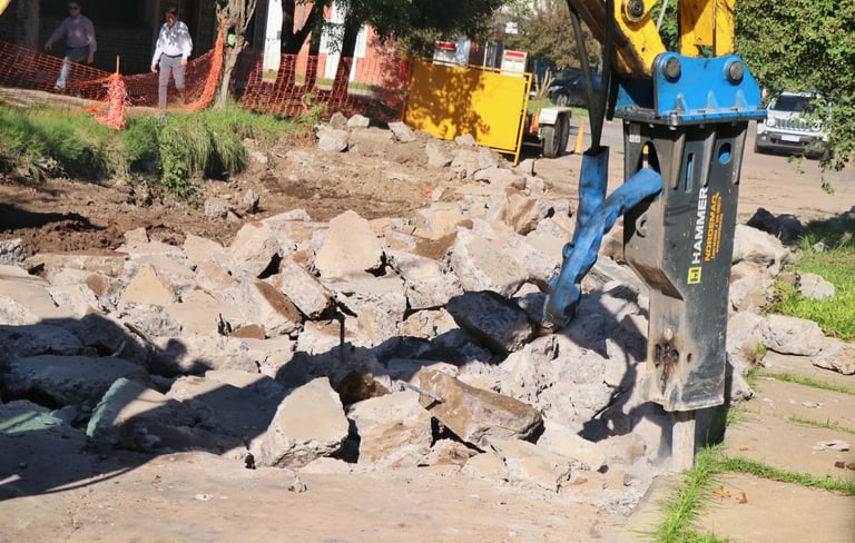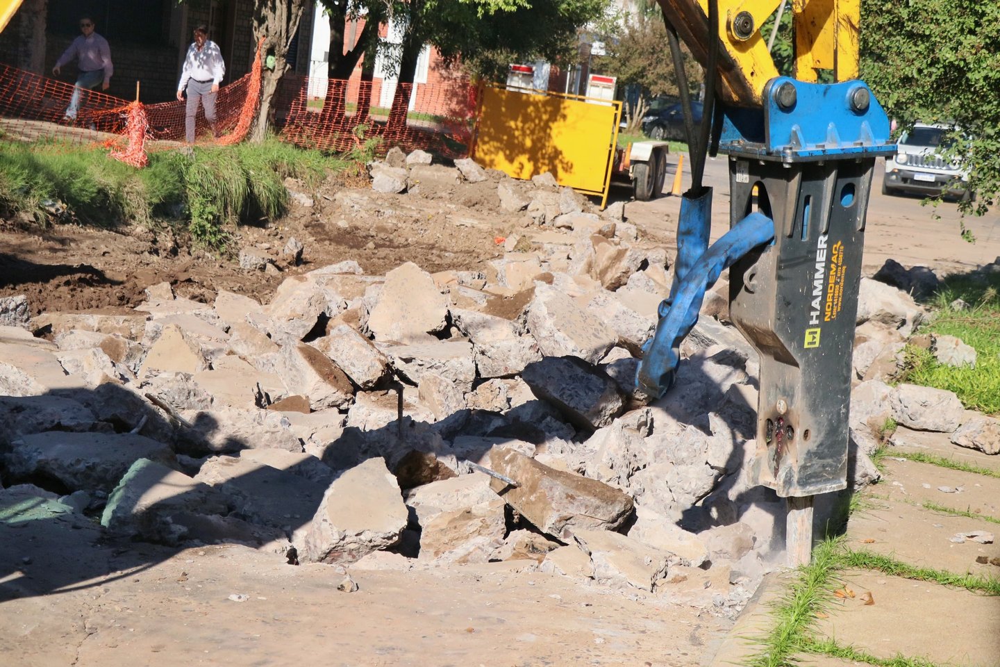 En este caso puntual, lo que sucedió es que además de haber un desmoronamiento de la losa se produjo la rotura del desagüe pluvial que cruza por debajo del pavimento. Por este motivo, para la reparación, el Municipio debió trabajar con maquinaria especial a los fines de resolver ambos inconvenientes sin ocasionar nuevos daños.