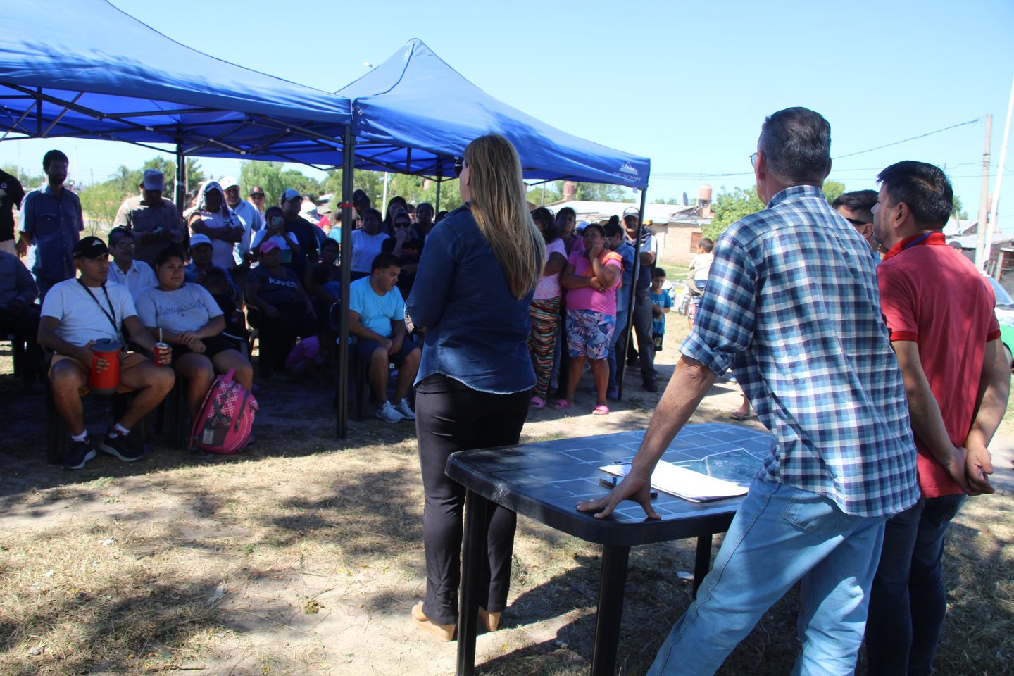 Mónica Ferragine, secretaria de Desarrollo Territorial y Ambiental, junto a su equipo, encabezó la reunión en la que se les explicó a los vecinos que, a partir de este jueves 20 de marzo, los agrimensores y asistentes sociales estarán visitando las casas para iniciar con el censo y la medición de los terrenos.