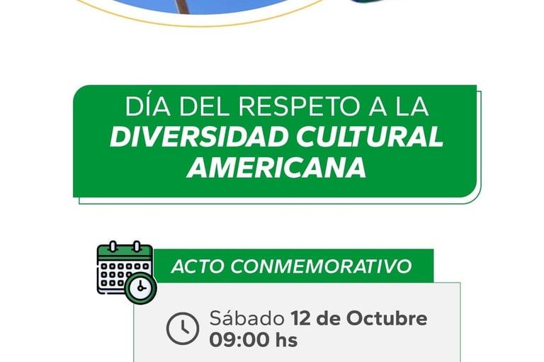 El sábado a las 9 horas, en conmemoración de "Día del respeto a la diversidad cultural americana", se realizará el acto y la Banda Municipal interpretará un Popurrí de Músicas de América.