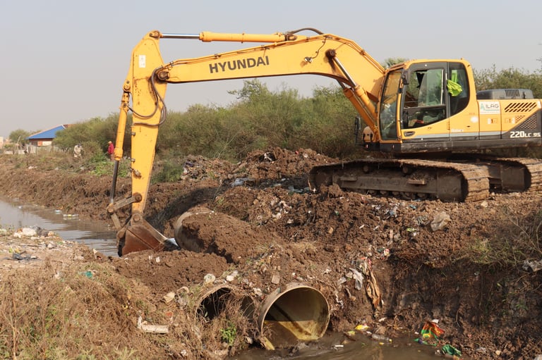 [05/08/2024] - La Municipalidad de Resistencia realiza trabajos de limpieza de canales primarios en la zona sur de la Ciudad, específicamente en avenidas Chaco, entre Quijano y el Canal 16.