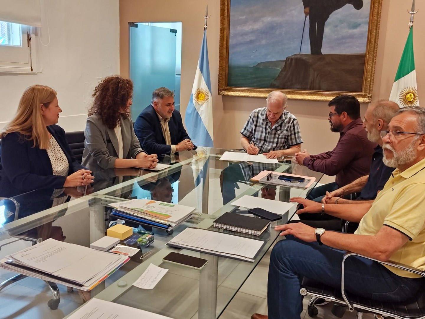 De la firma del convenio participaron la Subsecretaría de Asuntos Registrales, María de las Mercedes Marinich; Marcela González, interventora del Registro del Estado Civil y Capacidad de las Personas; Alberto Segovia, coordinador operativo; Luis Zarabozo, secretario de Obras Públicas municipal junto a Pablo Mujica, secretario de Desarrollo Humano de la comuna capital.