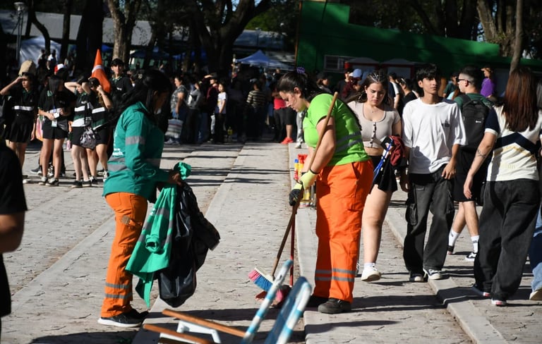 Daniel Ocampo, coordinador de los Centros Comunitarios y Delegaciones municipales, explicó que “trabajamos antes, durante y después de la fiesta, que salió muy bien, asistió mucha gente, pero todo quedó limpio”. Con personal de distintas dependencias, la intervención final se inició este lunes a las 6:30 y en menos de dos horas finalizó, dejando impecable todo el sector, en especial el Anfiteatro Griego y la zona de tribunas, canchas de basquet y pista de atletismo, donde se concentró la mayor cantidad de jóvenes.