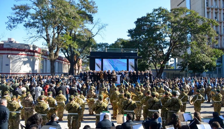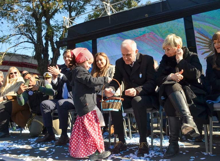 Hubo una suelta de globos de parte de alumnos de nivel inicial y se bailó el Pericón, como parte de este gran acto que concluyó con el desfile cívico militar, donde pasaron estudiantes, docentes, colectividades, excombatientes, fuerzas armadas y de seguridad, además de otras instituciones de la sociedad.