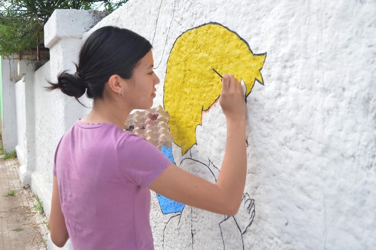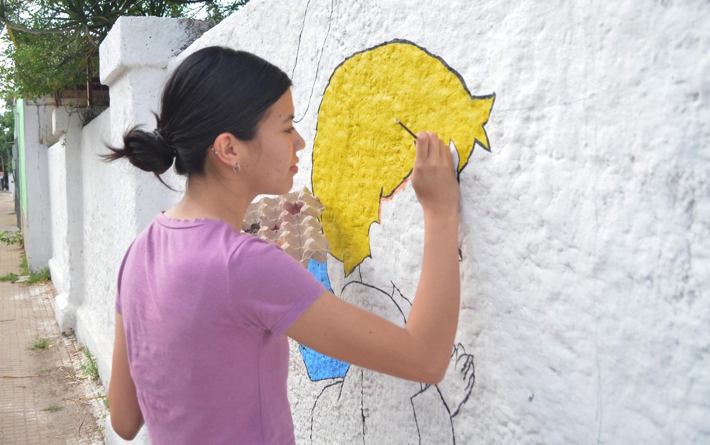 La hija de la que habla se llama Évelin y tiene 17 años de edad. Se sumó a la idea de su padre, no sólo poniendo su vocación por la pintura, sino también aportando a la compra de materiales con dinero que ganó vendiendo budines.
