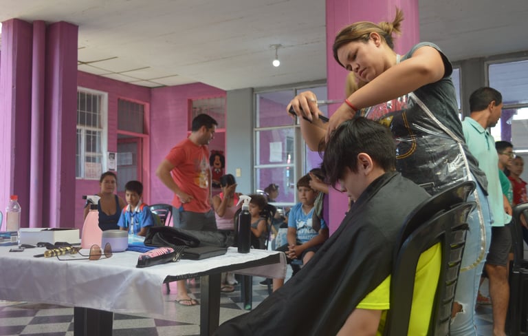 Además, un grupo de trabajadores municipales ofrecen cortes de cabellos gratuitos para niños, también preparándolos para el comienzo de las clases, y a los adultos que se acerquen.