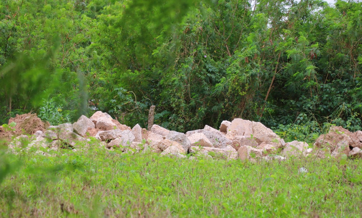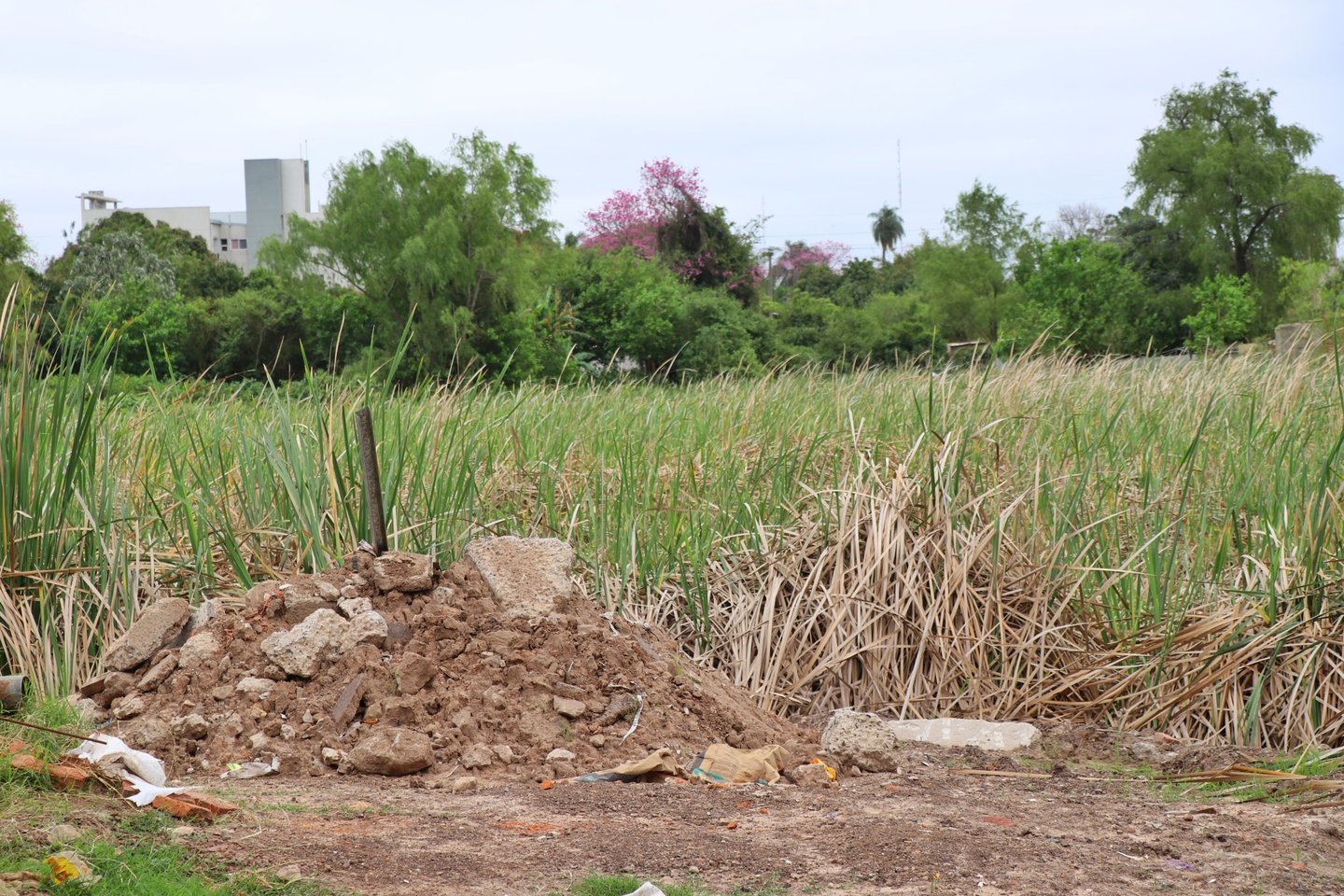 EN LA LAGUNA DE VILLA LOS LIRIOS DETECTARON OTRO RELLENO ILEGAL, EN ESTE CASO CON ESCOMBROS DE HORMIGON