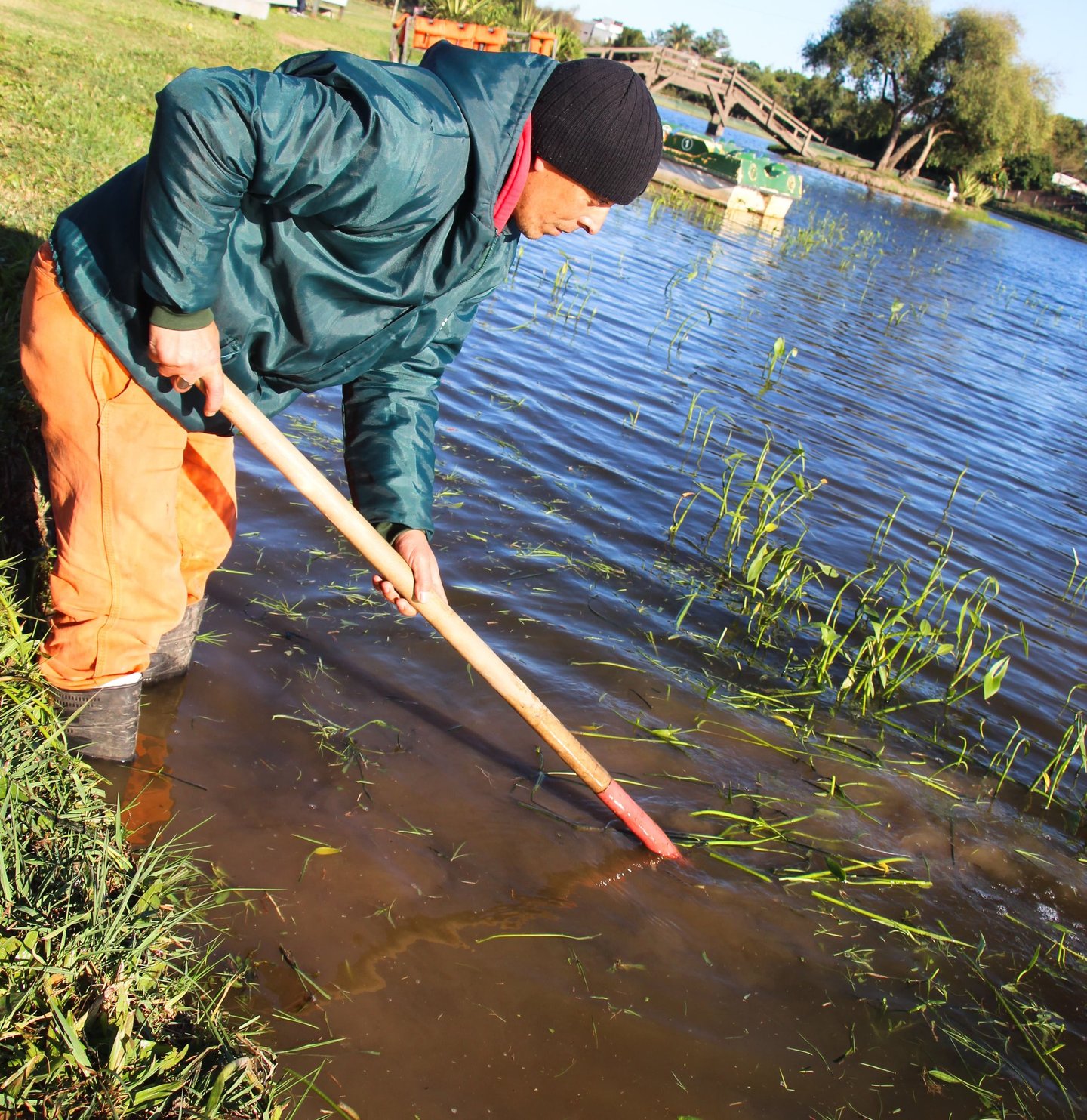 Gustavo Torres, integrante de este sector, explicó que el trabajo consiste en la limpieza general de esta laguna, ubicada sobre avenida Italia, en Villa Altabe y frente al barrio Los Troncos.“Trabajamos en el despeje de camalotes que crecen mucho, esto nos llevará cerca de un mes y estamos en permanente mantenimiento”, expresó.