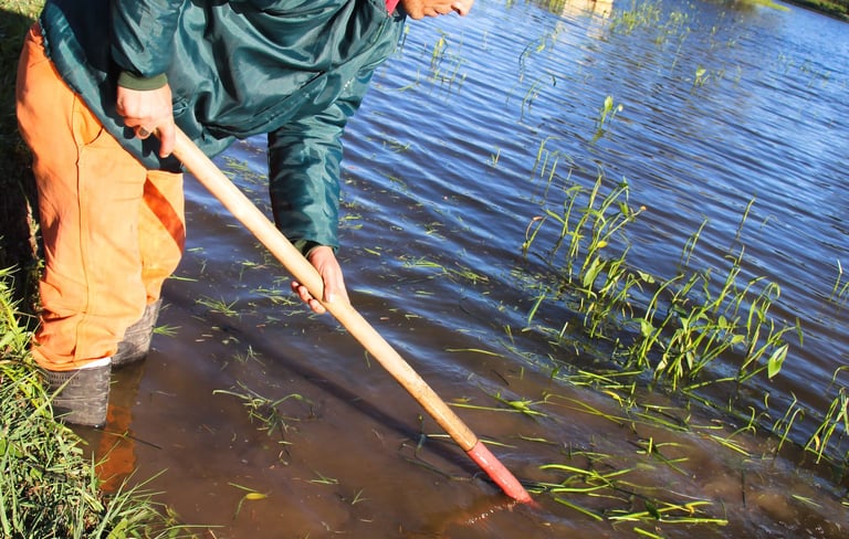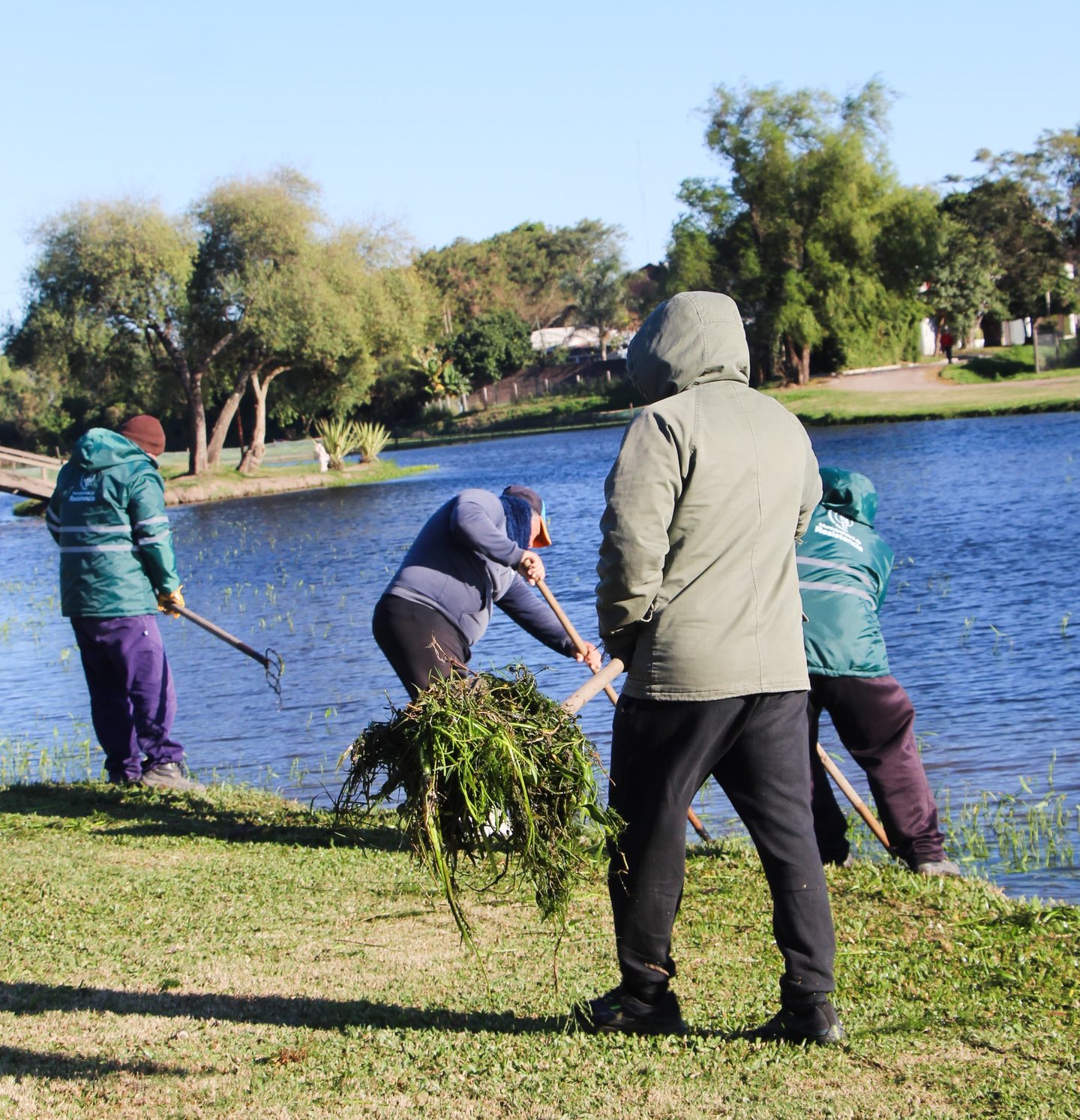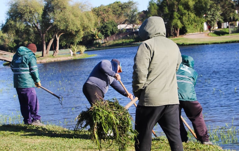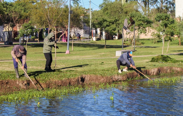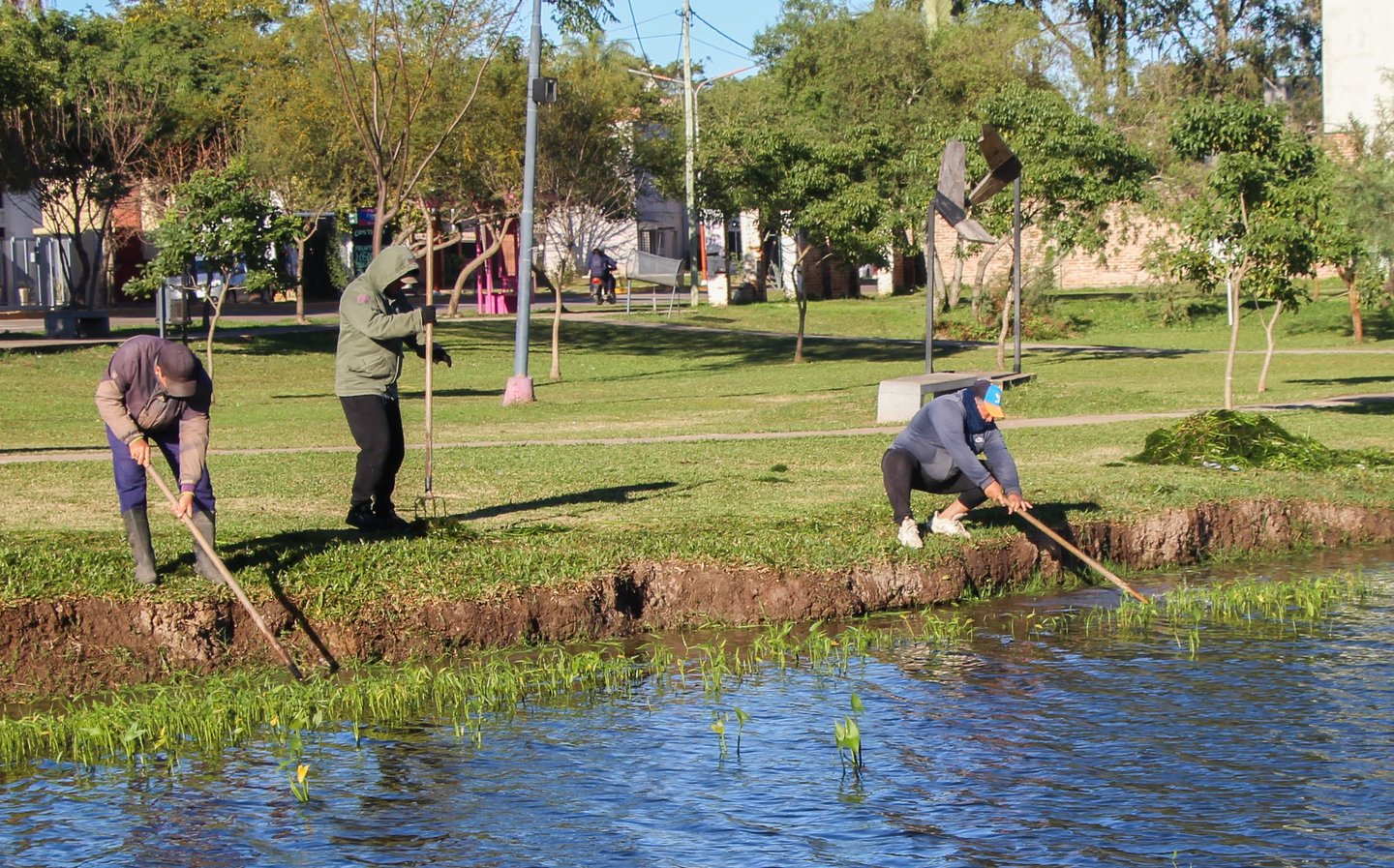 [18/07/2025]-La Municipalidad de Resistencia comenzó un trabajo de mantenimiento de la Laguna Francia, a fin de despejar la vegetación acuática que se encuentra en la superficie de este espacio.