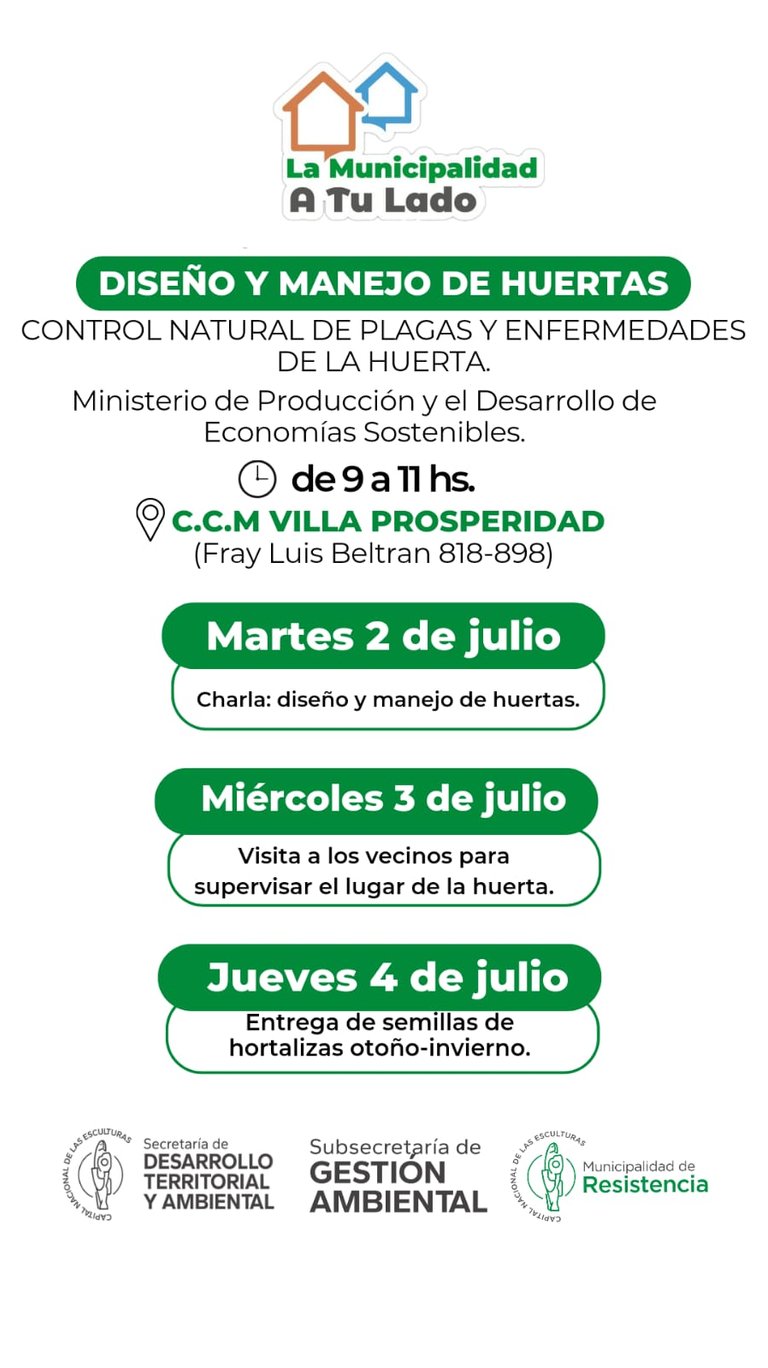 El miércoles, en tanto, serán visitados los vecinos para supervisar el lugar de sus huertas y, el jueves 4, se entregarán semillas de hortalizas de la temporada otoño-invierno.