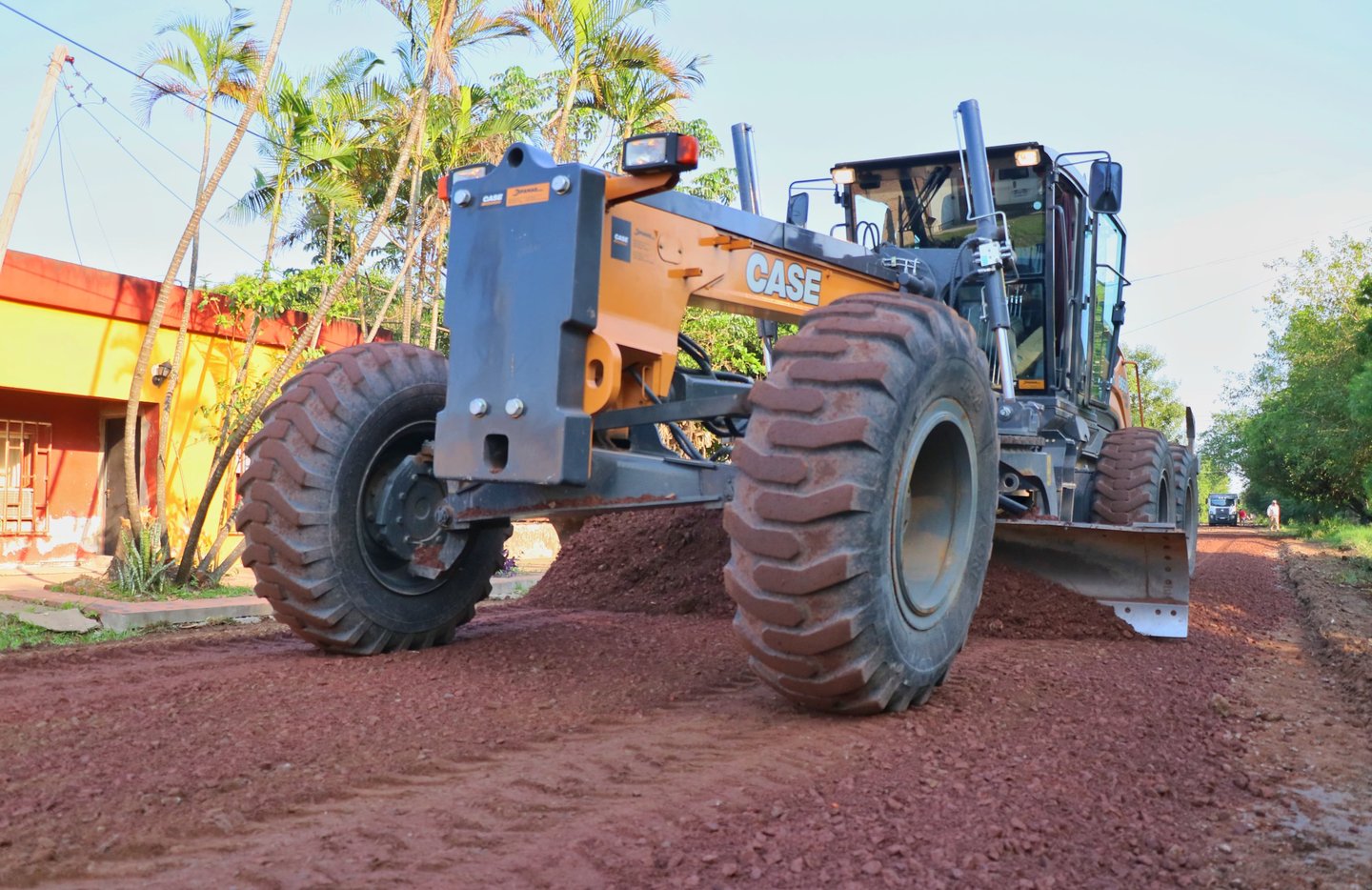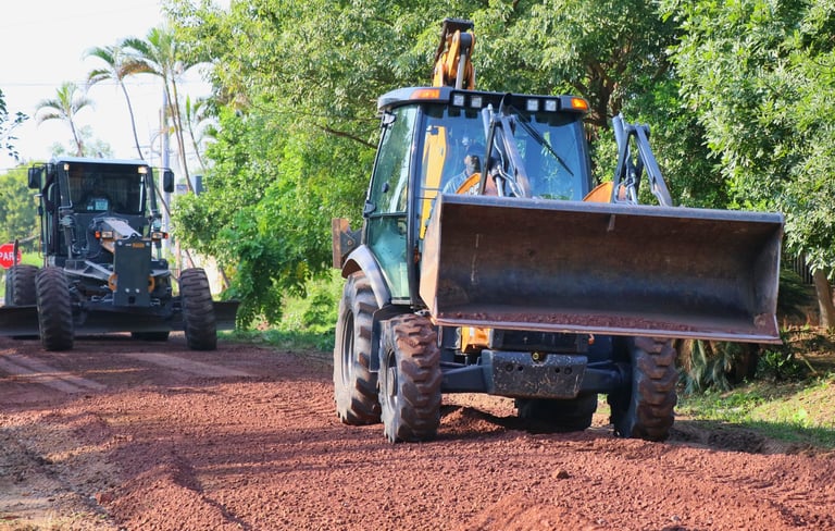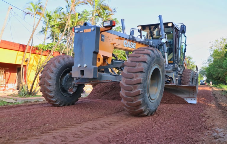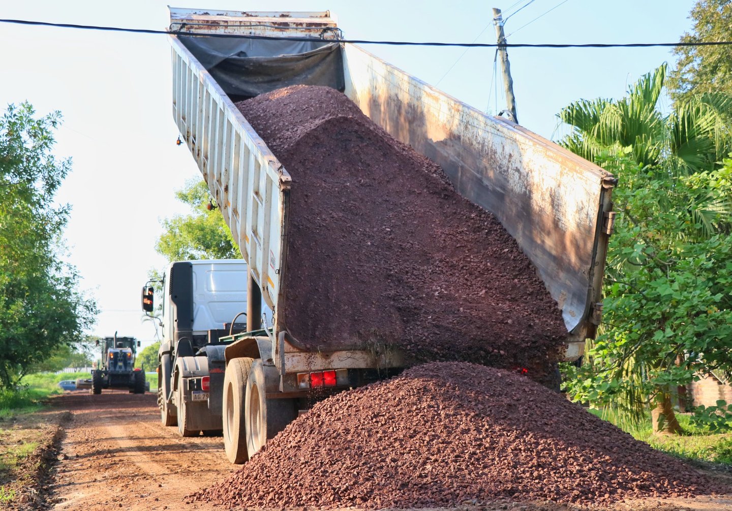 Se utilizaron una motoniveladora y una retroexcavadora propias, más un camión batea que distribuyó el material.