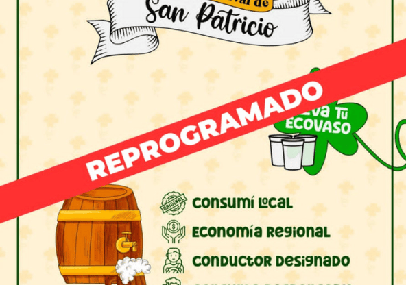 [19/03/2024] - Luego de las intensas lluvias del pasado sábado que obligaron a la suspensión del festival de San Patricio, el encuentro tiene nueva fecha, se realizará este sábado 23 de marzo a partir de las 18 horas en la Pista de Atletismo del Parque 2 de Febrero.