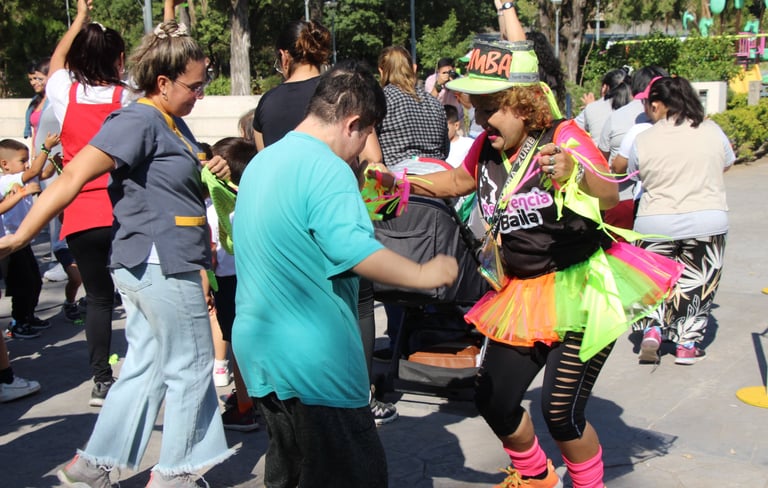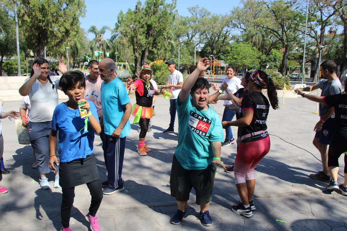 Parte del equipo de profesoras estuvieron este viernes en la Plaza España, participando de la jornada en conmemoración del Día Mundial del Síndrome de Down, como ser María Olivieri, del Centro Comunitario del barrio Santa Rita; la profesora Lulú del CCM del barrio 244 Viviendas; Belén Cáceres, instructora de ritmos latinos y su colega Estela Domínguez.