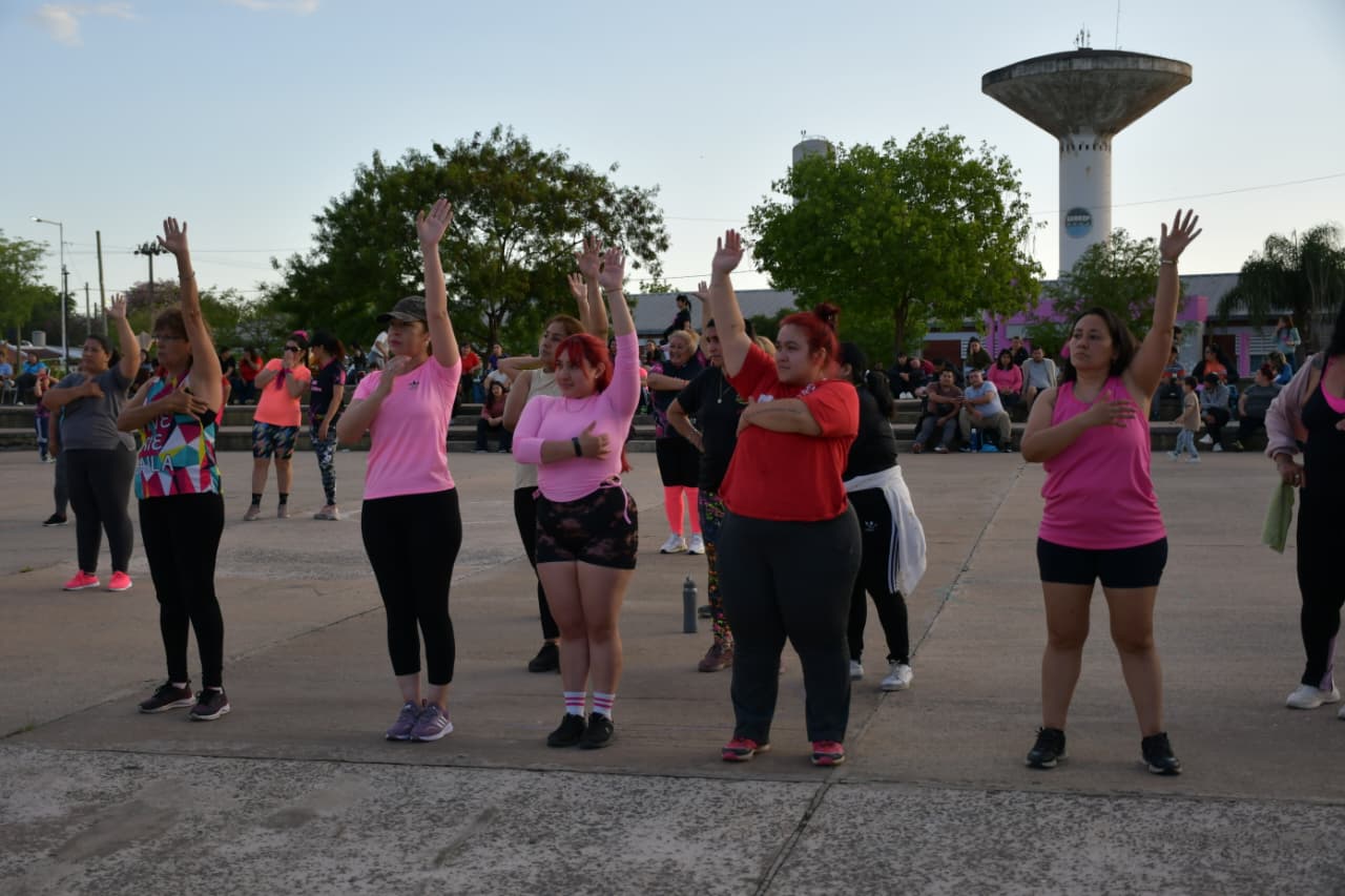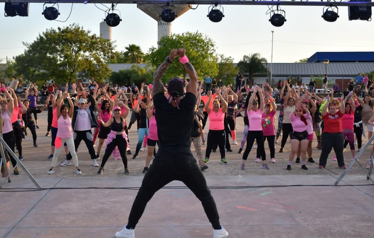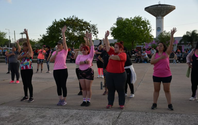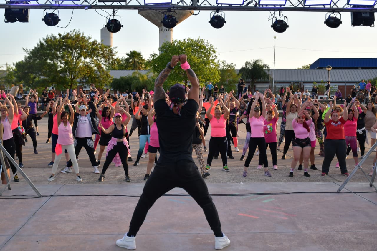 [14/10/2025-La Municipalidad de Resistencia presentó este domingo, en la Plaza Paseo Sur, una master class de zumba que estuvo a cargo de dos instructores de nivel nacional. La actividad se gestionó a través de las Subsecretarías de Acción Social y Deportes; a partir de las cuales se coordinó toda la logística para una importante convocatoria que fue enmarcada en el Mes Rosa, donde se trabaja en la concientización sobre la prevención del cáncer de mama.