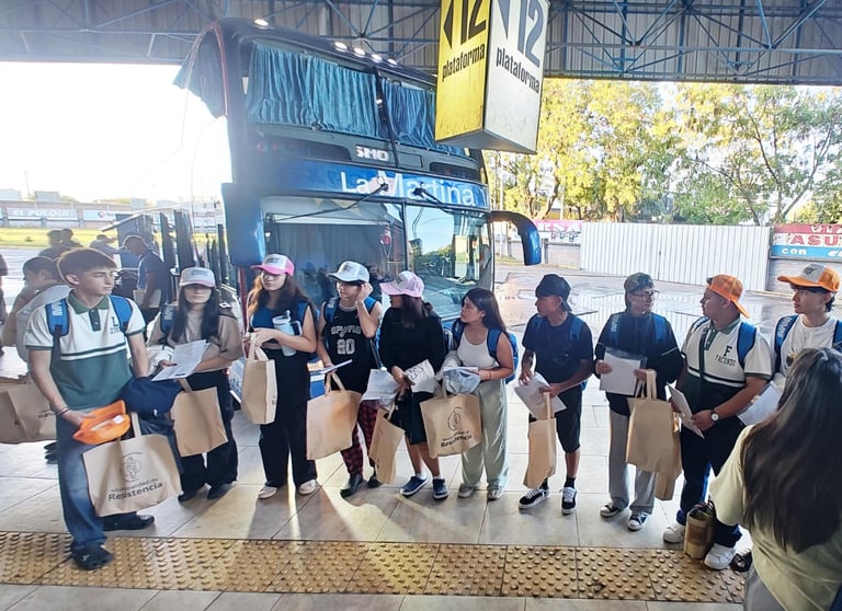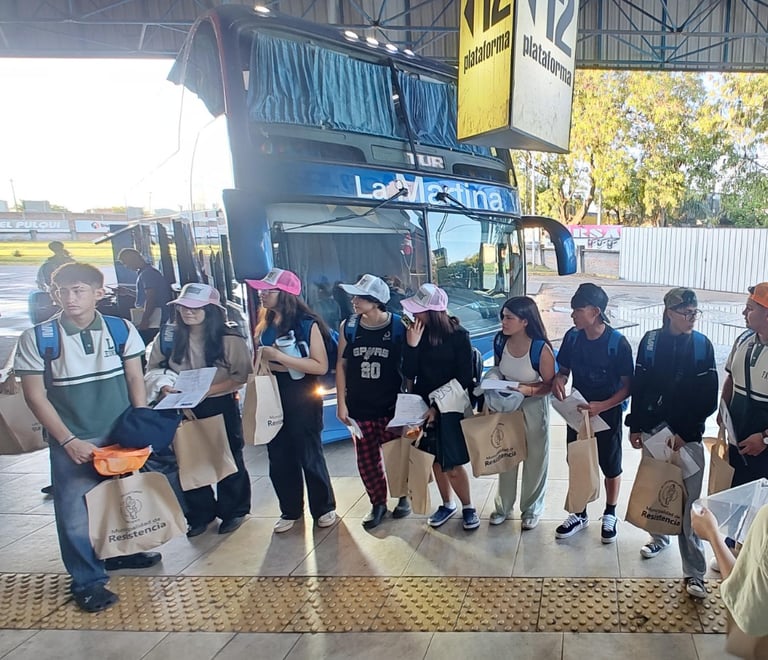 [11/12/2025] - La Municipalidad de Resistencia acompañó la partida de los alumnos ganadores de la Estudiantina 20205. Los mismos fueron favorecidos en la apertura del cofre luego de participar de distintas dinámicas para conseguir sus llaves.