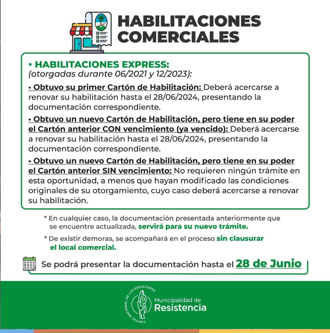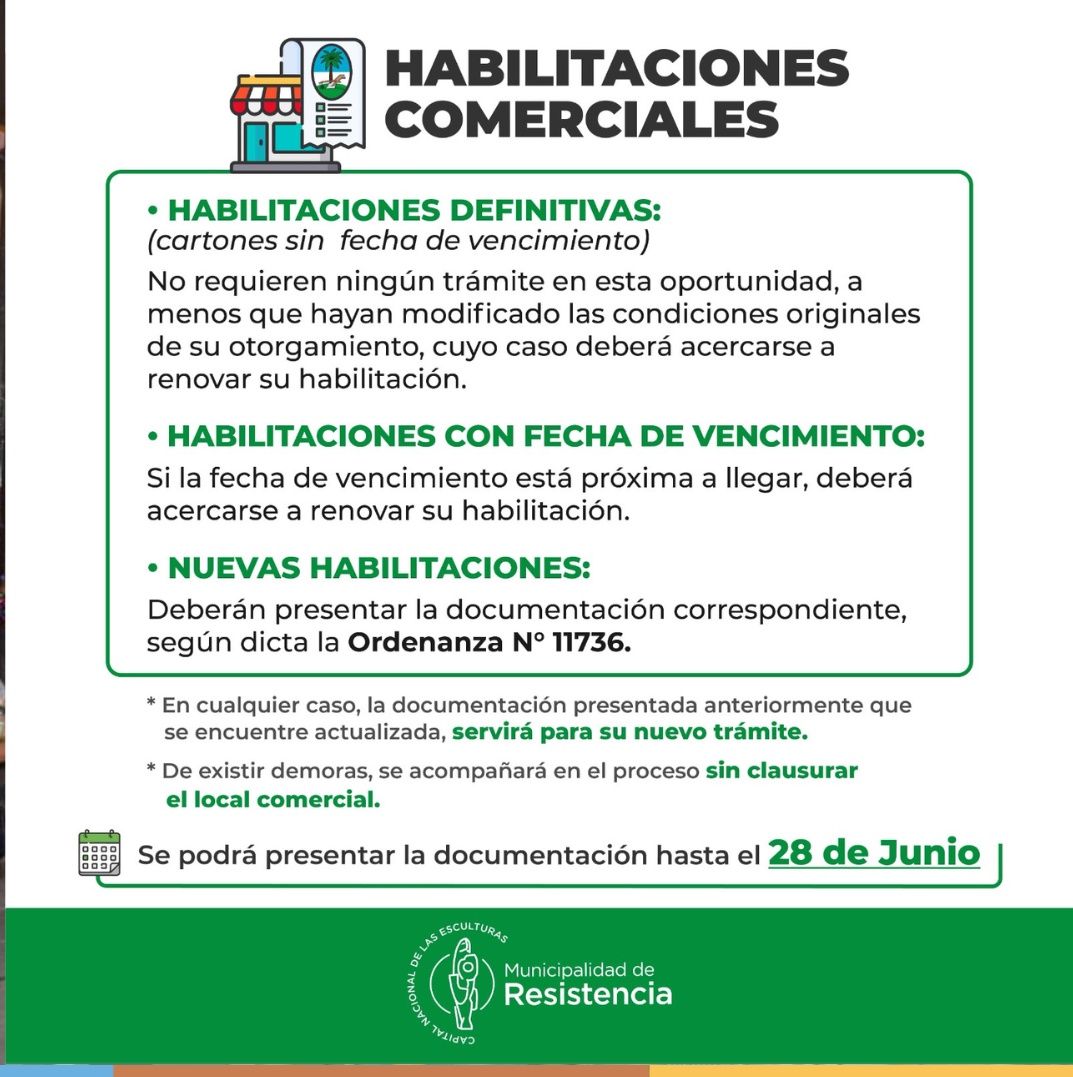 HABILITACIONES COMERCIALES: LA MUNICIPALIDAD DE RESISTENCIA PRORROGÓ EL PLAZO PARA PRESENTAR LA DOCUMENTACIÓN HASTA EL 30 DE JUNIO