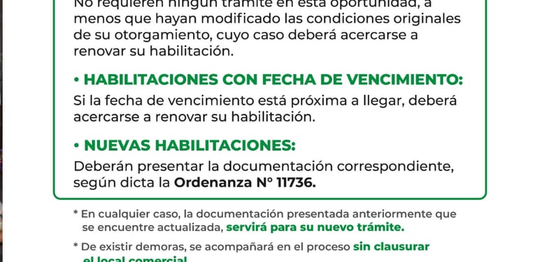 Aquellos comerciantes que obtuvieron su primer cartón de acreditación entre junio de 2021 y diciembre de 2023, en el marco de las condiciones especiales dispuestas en aquel momento, deberán adecuarse a lo dispuesto por la Ordenanza vigente. Algo similar sucede con quienes tengan una habilitación “especial”, pero cuenten con un cartón anterior ya vencido que le fuera otorgado antes del Blanqueo.