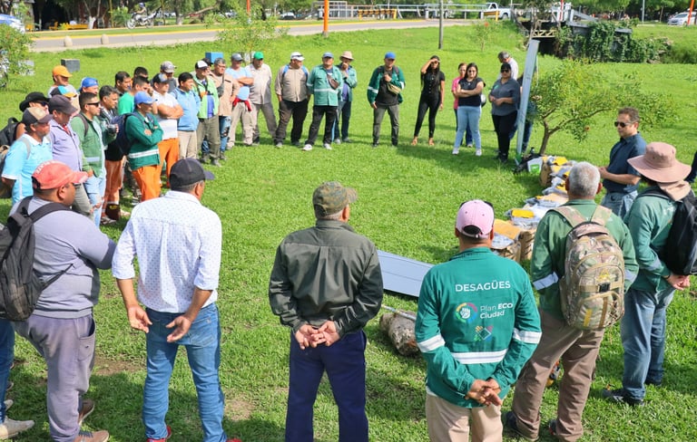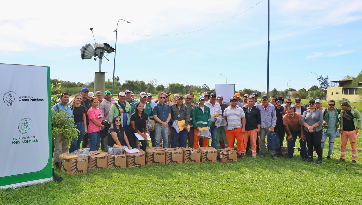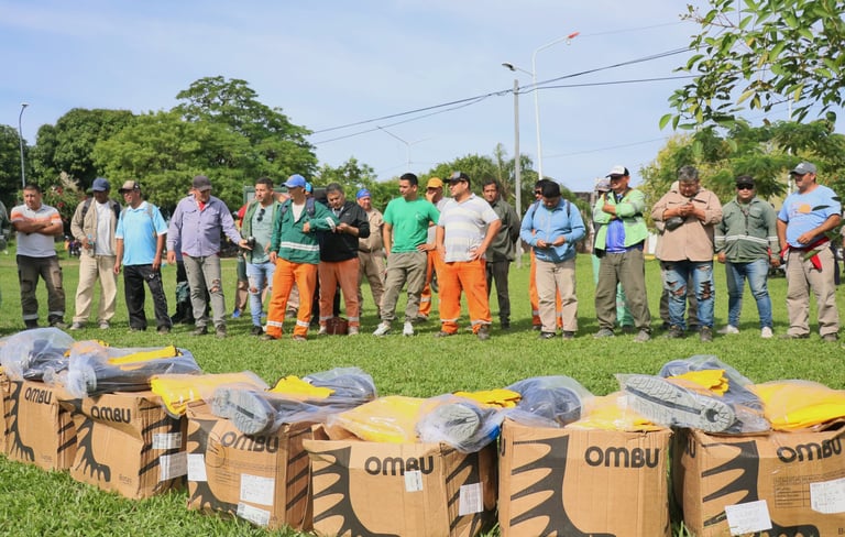16/05/2025] - La Municipalidad de Resistencia continúa equipando a sus trabajadores para que lleven adelante sus tareas en las mejores condiciones posibles. En la zona del Parque Urbano Laguna Argüello, el grupo de limpieza de lagunas y espejos de agua, conocido como “Los Carpinchos” recibió la ropa de lluvia.
