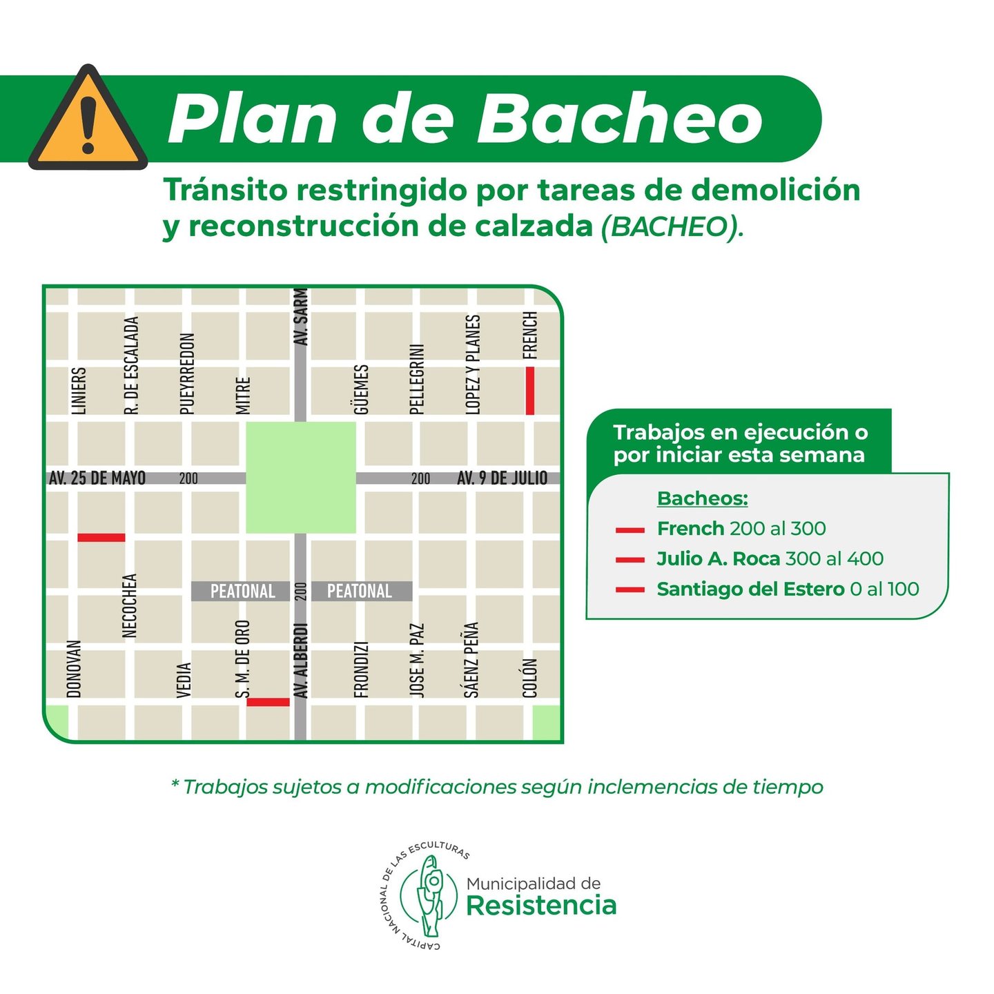 [19/11/2024] - La Municipalidad de Resistencia y la Dirección de Vialidad Provincial informan los trabajos que, por el Programa de Bacheo 2024, se ejecutarán esta semana.