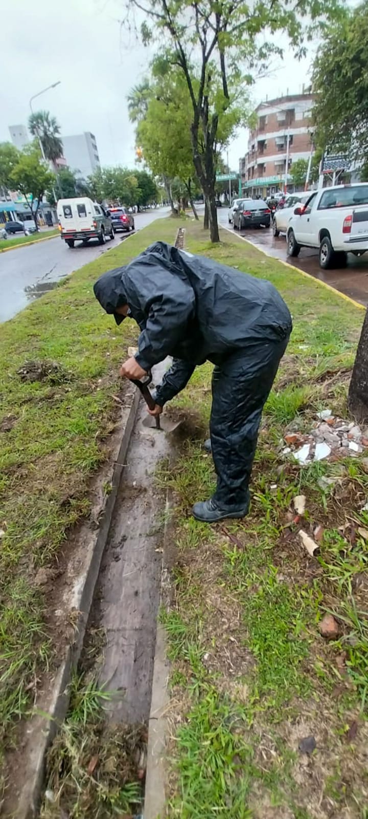 Los equipos municipales trabajaron en el micro y macrocentro, además de distintos barrios de Resistencia; realizando tareas de desobstrucción de bocas de tormenta, zanjeo en sectores críticos, limpieza de sumideros y rejillas; todas acciones que persiguen el objetivo de asegurar el escurrimiento adecuado del agua.