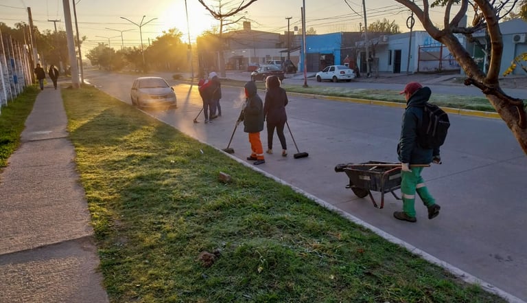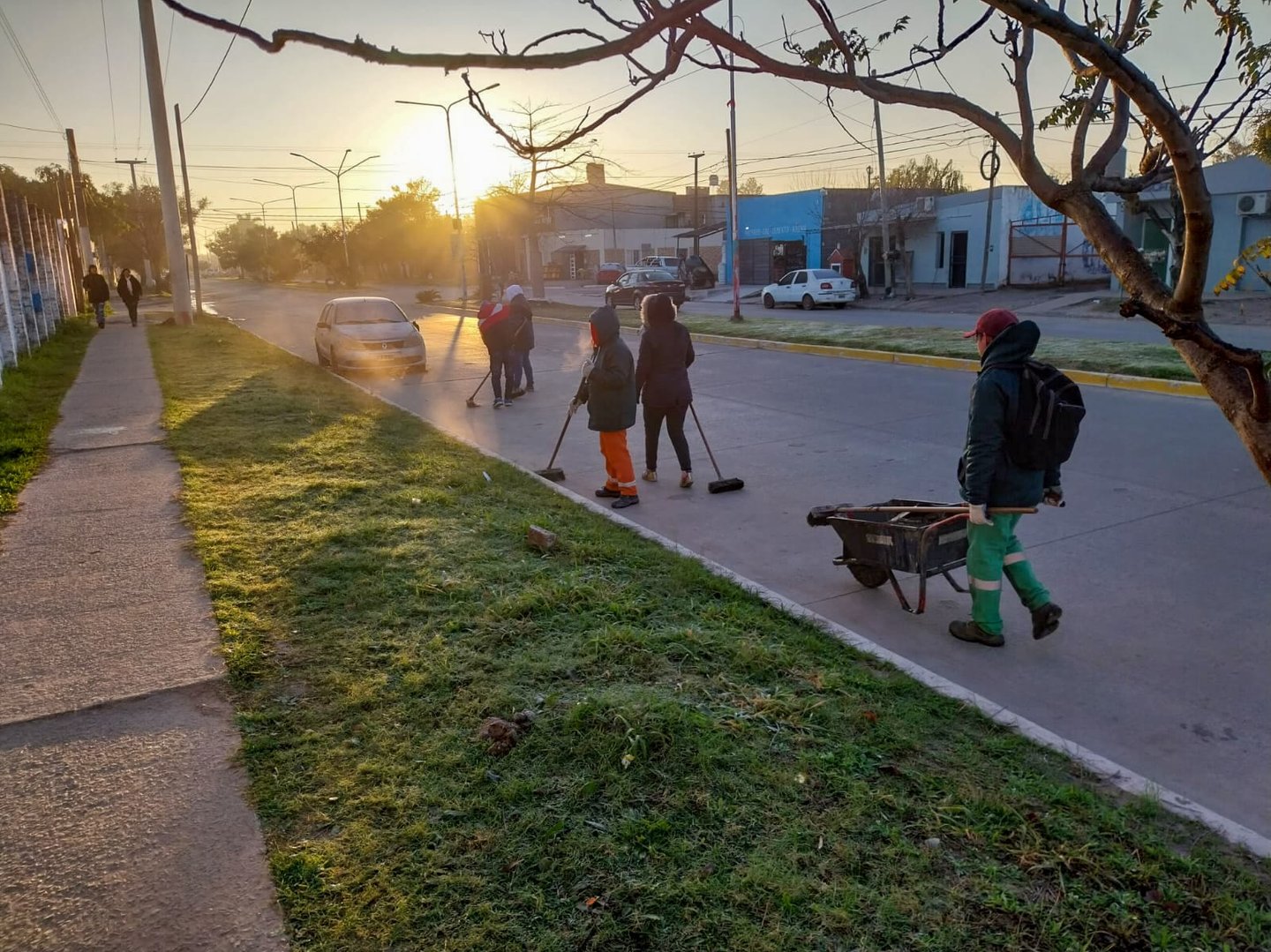Lo que más tiempo demandó fue el desmalezado y la recolección de residuos diseminados en la vía pública y el despeje de ramas y hojas secas.