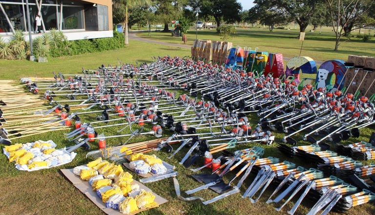 Se trata de desmalezadoras, motoguadañas, rastrillos, carretillas, guantes, escobillones, barre hojas, machetes y horquillas, elementos que serán de inmediato utilizados para continuar con los operativos de higiene urbana que se ejecutan en todos los barrios de la ciudad.