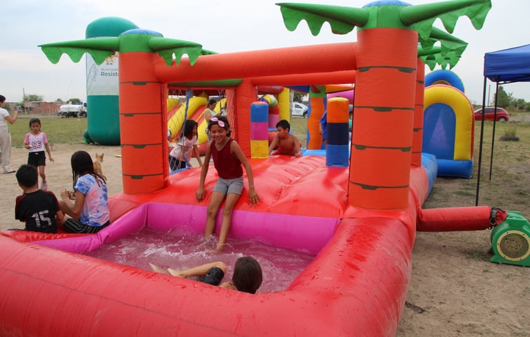 Fue en el barrio “6 de Septiembre”, donde por espacio de unas horas, la población infantil disfrutó de distintas actividades, como ser castillos inflables con agua, juegos lúdicos, lectura y compartieron alegrías con los Payasonrisas.