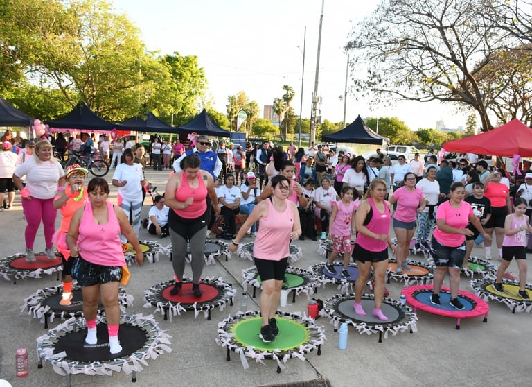 [19/10/2025-La Municipalidad de Resistencia realizó este sábado una jornada de concientización sobre la prevención del Cáncer de Mama, en el predio del Domo del Centenario. Allí se tuvo su inicio la caminata rosa hacia la Laguna Argüello; donde luego se compartieron actividades saludables con los instructores del programa Resistencia Baila.