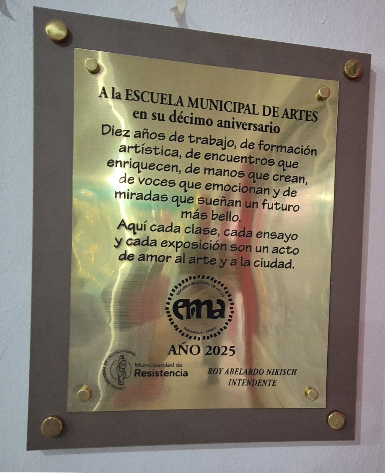 Desde la Municipalidad de Resistencia se ratifica una política firme en materia cultural y turística que se desarrolla en dos facetas: para lo externo es darle el apoyo a las entidades institucionales, sociales, religiosas o educativas que llegan a la ciudad y deban tener la logística; por otro lado está la idea de dotar al vecino de elementos y oportunidades para que pueda formarse en el arte. Mariela Michelini, es la directora de la Escuela Municipal de Artes desde su creación; de hecho fue ella misma la promotora de su creación. Por ello no pudo ocultar su felicidad por llegar a la primera década de historia: “La verdad es que estoy muy emocionada porque empezamos con muy poco, yendo a los centros comunitarios y a los barrios para dar talleres”.